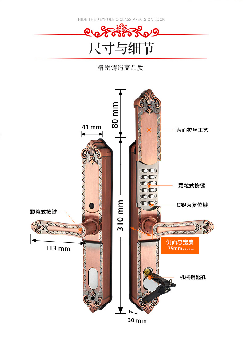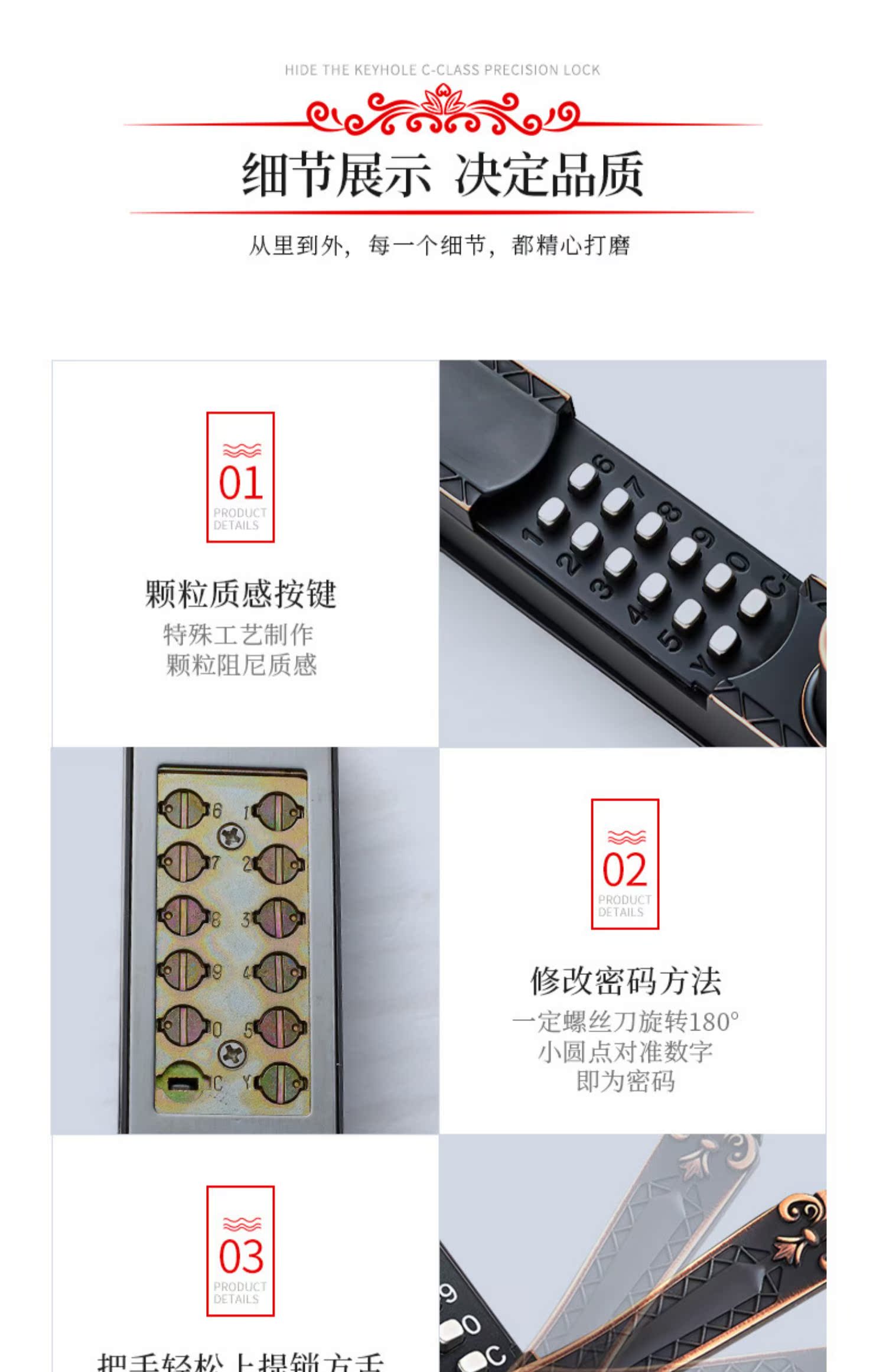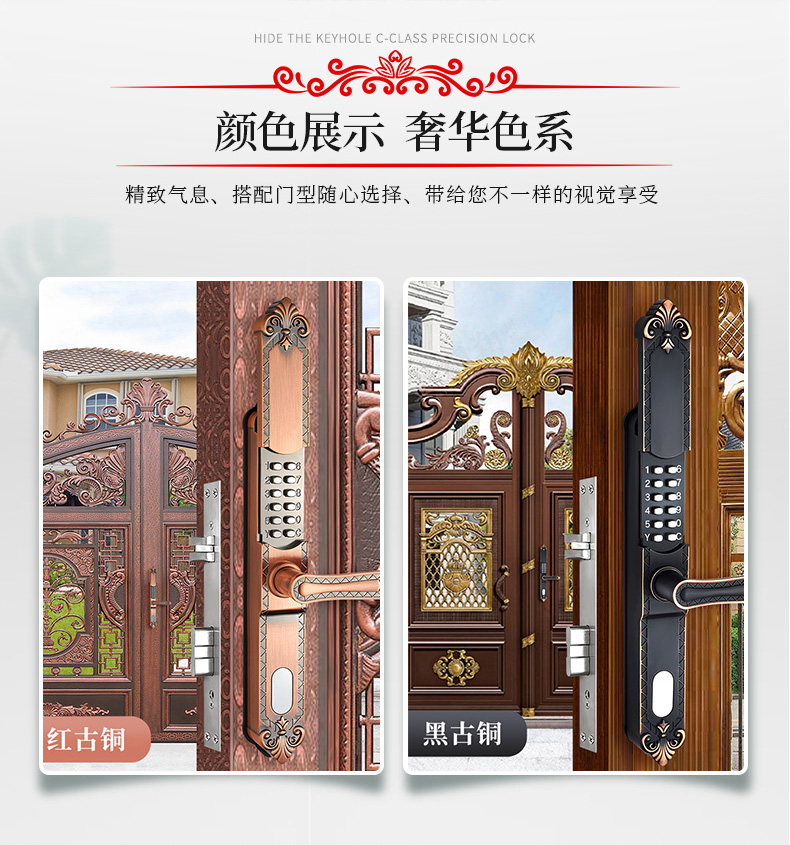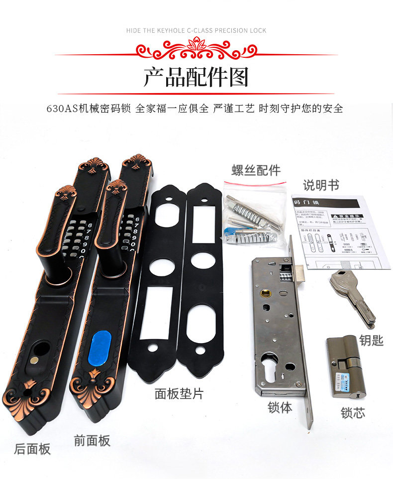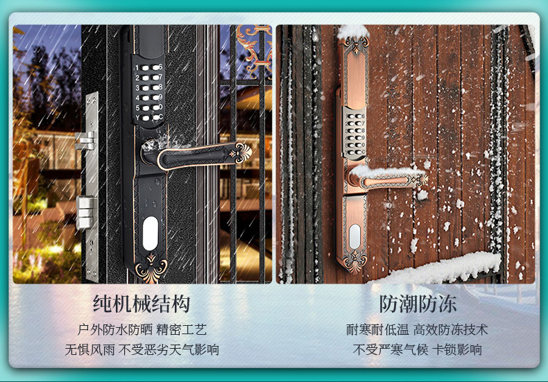 Guanxiang cơ học hai mặt khóa mật khẩu khóa cửa ngoài trời không thấm nước Châu Âu vào sân trong Cửa ra vào hợp kim nhôm khóa cửa với chìa khóa