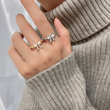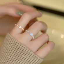 Gumao Ning mở đầu cá tính Nhẫn thiết kế hốc zircon tre phiên bản Hàn Quốc của phong cách phổ biến nhẫn chuỗi kim cương vuông sang trọng nhẹ