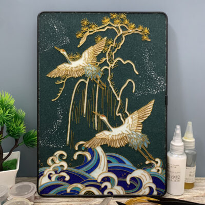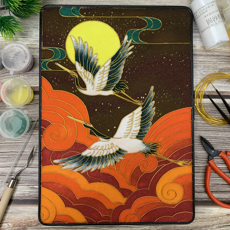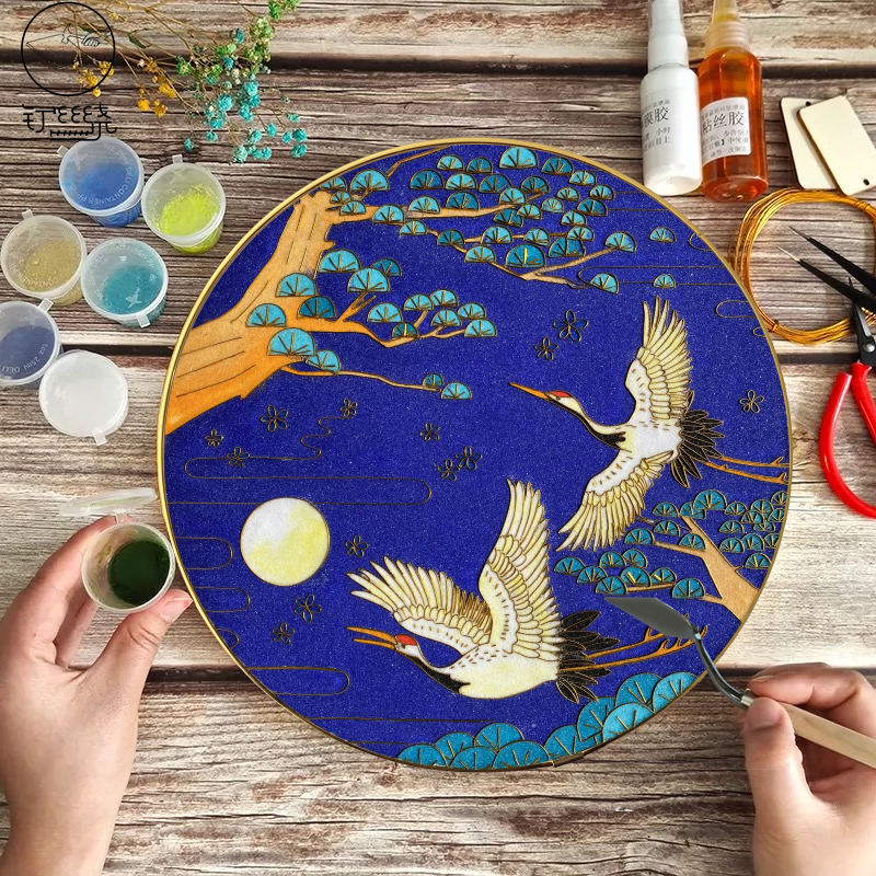 Guochao Crane Phong cảnh Trung Quốc Thái Blue Cloisonné Men Tranh Gói vật liệu thủ công DIY Di sản văn hóa phi vật thể Bước vào khuôn viên Thiết kế hoàn chỉnh