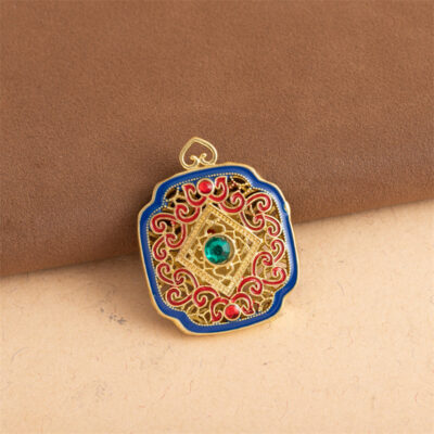 Guochao tráng men màu đồng nguyên chất bầu mặt dây chuyền móc chìa khóa cặp đôi khóa cloisonne dầu nhỏ giọt chuỗi rỗng dây quà tặng an toàn