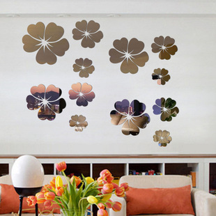 | 木槿花 镜面墙贴 3d立体 一套5朵 厂家直销 最大20cm 最小 10cm |