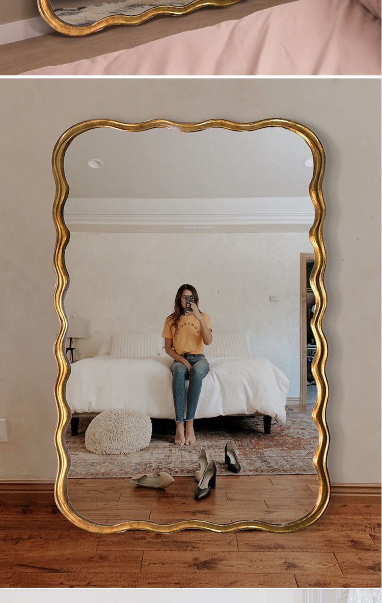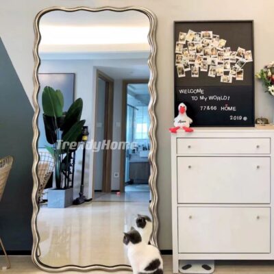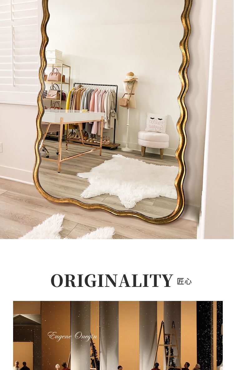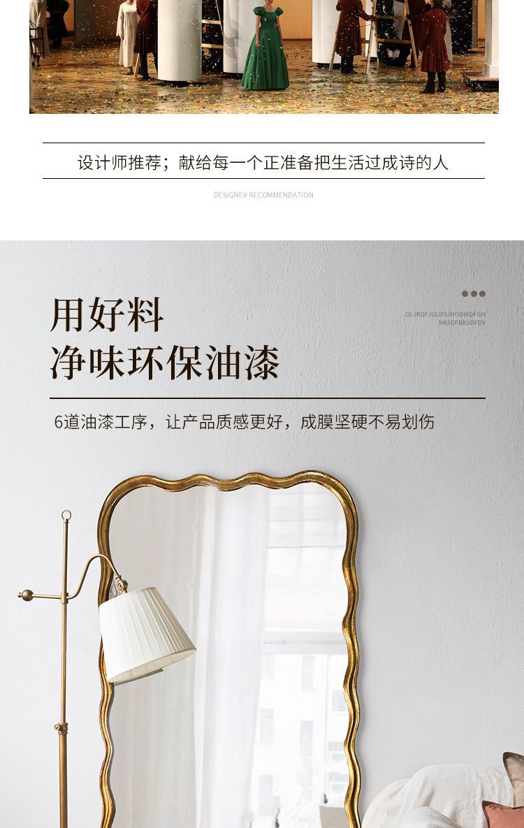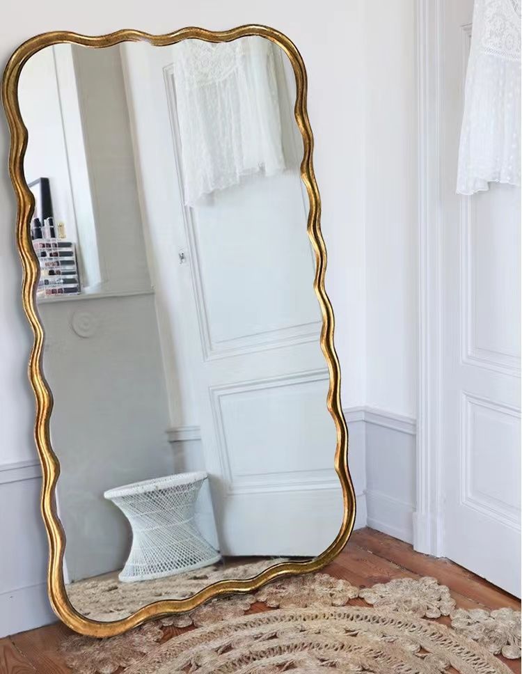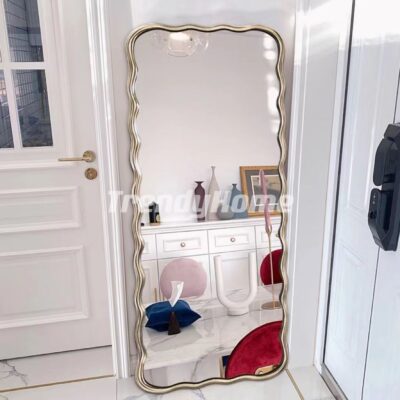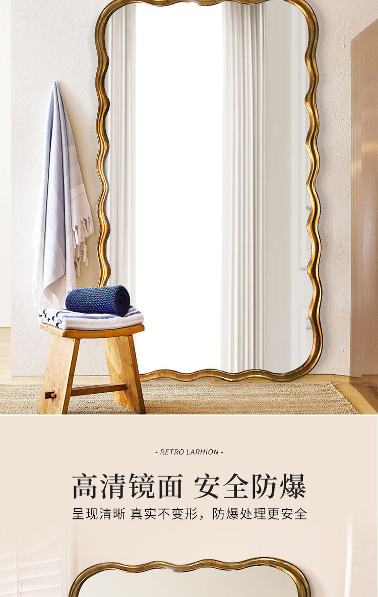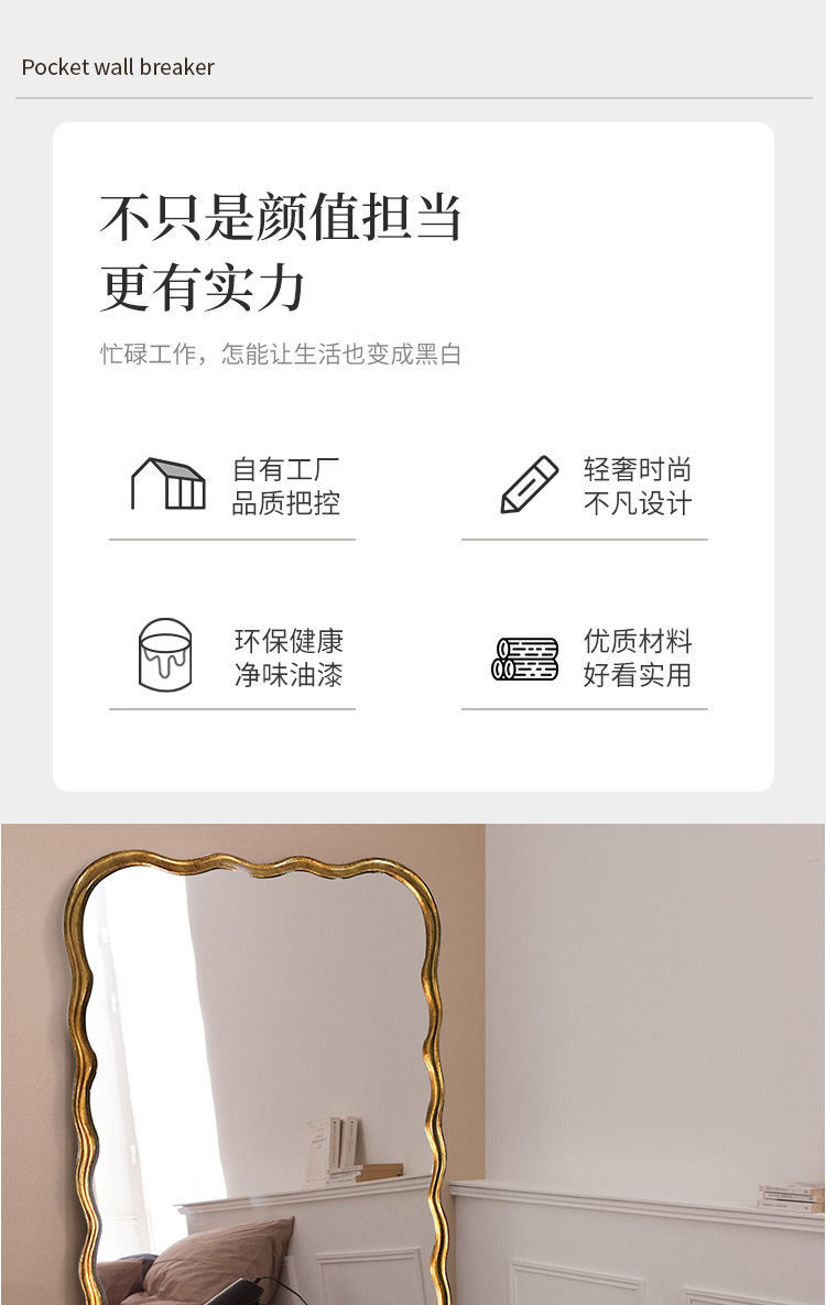 Gương soi từ trần đến sàn sóng hiện đại gương toàn thân đơn giản có hình dạng đặc biệt lưới màu đỏ cùng kiểu gương trang điểm gương nhập cảnh