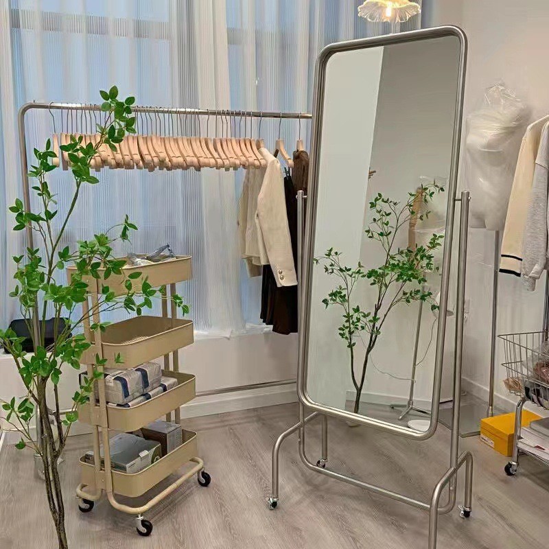 Gương toàn thân bằng thép không gỉ cửa hàng quần áo gương lắp gương có thể tháo rời gương trang điểm toàn thân gương sàn phong cách gia đình