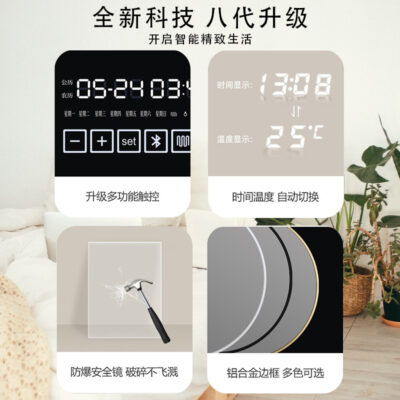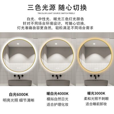 Gương tròn thông minh có khung đèn LED gương phòng tắm khách sạn chống sương mù phát quang toilet trang điểm gương phòng tắm treo tường không đục lỗ