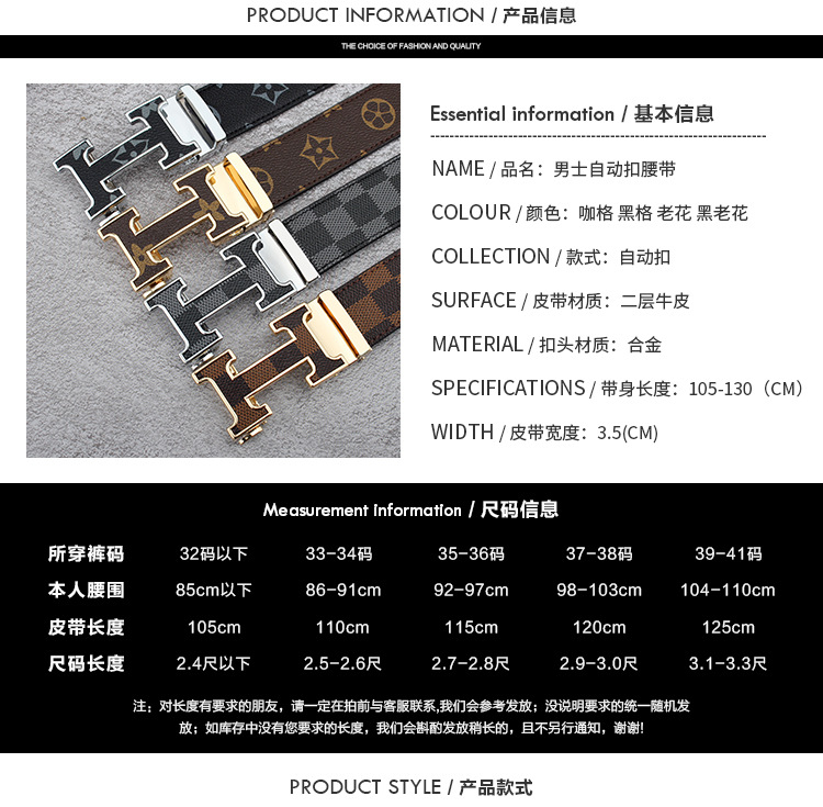 H thắt lưng nam kẻ sọc mới dành cho nam giới trung niên và thanh niên bằng da H tự động khóa thắt lưng quần các nhà sản xuất kinh doanh bán buôn bán hàng trực tiếp