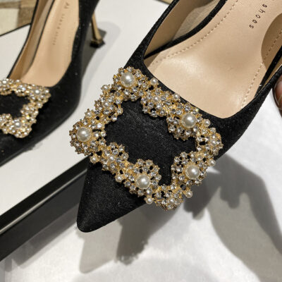 H876-78 giày cao gót nữ mũi nhọn kiểu mới miệng nông giày nữ đi lại khóa vuông kim cương giả khí chất phiên bản Hàn Quốc giày cao gót đế đơn nữ