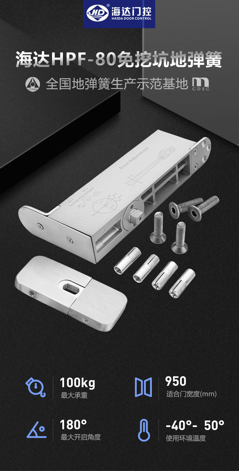 Mã sản phẩm: hpf-80 Thương hiệu: Haida Kích thước bề ngoài: 181*57*34MM Mẫu mã: hpf-80 Kích thước cánh cửa áp dụng: 950MM Độ mở cánh cửa tối đa: 180 độ Thông số kỹ thuật: lò xo sàn không lỗ (thích hợp cho cửa gỗ/cửa có khung ) xử lý và tùy chỉnh: Có Cho dù nguồn cung cấp độc quyền xuất khẩu xuyên biên giới: Không Phong cách: Hiện đại và đơn giản Trọng lượng cửa chấp nhận được: 100kg