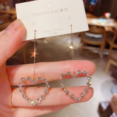 Hàn Quốc Dongdaemun Love Rhinestone Tính Khí Bông Tai 2023 Mới Hợp Thời Trang Internet Người Nổi Tiếng Thời Trang Đa Năng Earhook Bông Tai Nữ