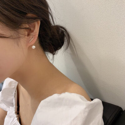 Hàn Quốc Dongdaemun S925 Bạc Kim Từ Đơn Giản Bông Tai Đá Đa Năng Tính Khí Bông Tai Ngọc Trai Cô Gái Bông Tai Trái Tim