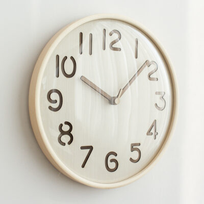 Hàn Quốc mjk đồng hồ phòng khách gỗ nguyên khối tròn gỗ đồng hồ treo tường sáng tạo bầu không khí rỗng câm đồng hồ tối giản hiện đại