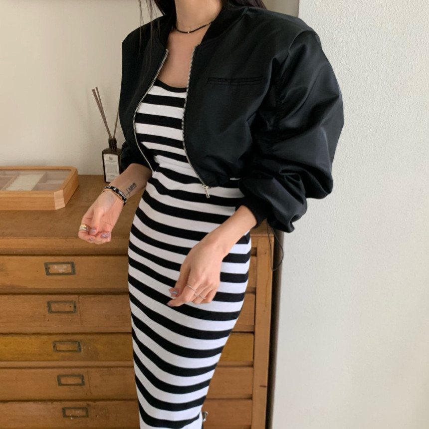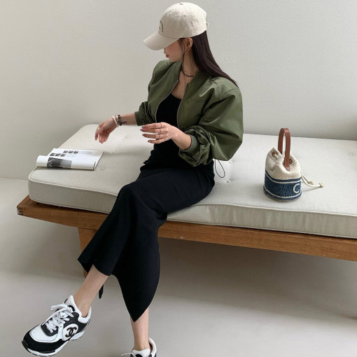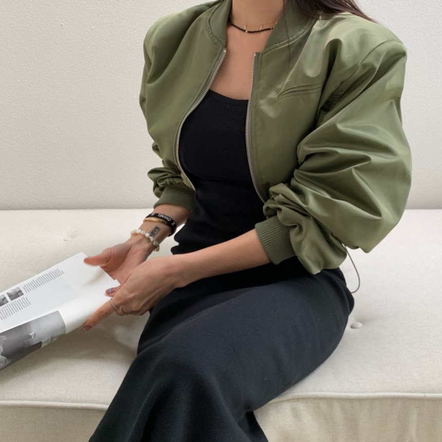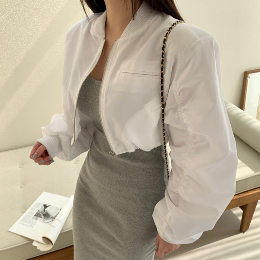 Hàn Quốc sang trọng mùa xuân retro tất cả các trận đấu áo khoác không cổ áo khoác thiết kế cảm giác thích hợp áo khoác bóng chày ngắn nữ