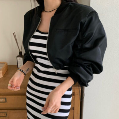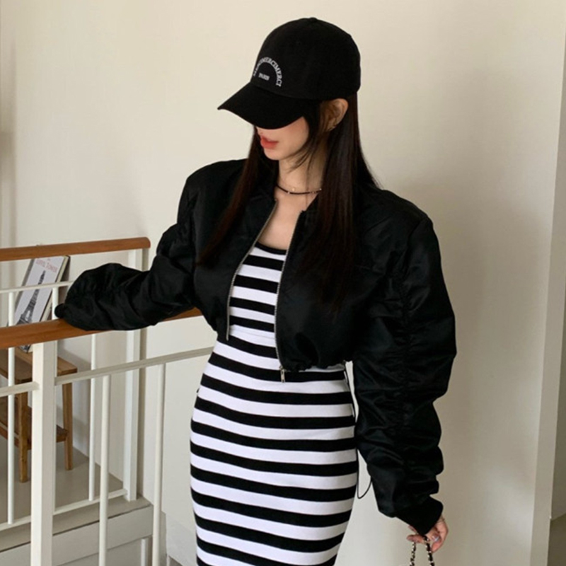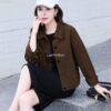 Hàn Quốc sang trọng mùa xuân retro tất cả các trận đấu áo khoác không cổ áo khoác thiết kế cảm giác thích hợp áo khoác bóng chày ngắn nữ