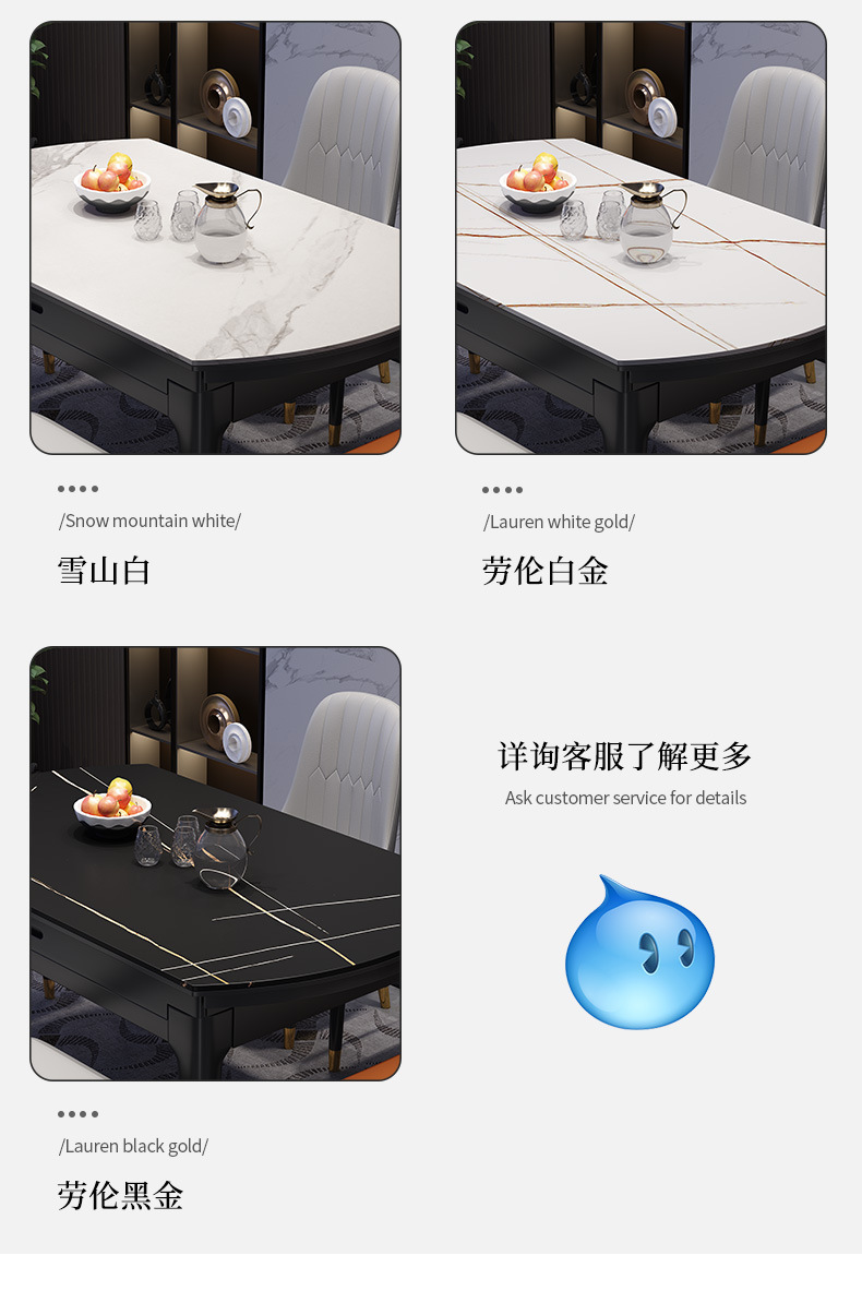 Màu sắc: Bàn ăn màu trắng đá bóng 1,2m/Bàn ăn màu trắng đá bóng 1,35m/Bàn ăn màu trắng đá bóng 1,5m/Bàn ăn màu xám đá bóng 1,2m/Bàn ăn màu xám đá bóng 1,35m/Bàn ăn màu xám đá bóng 1,5m/ Bàn ăn màu xám bóng 1,5m gấp: Có Phương pháp xử lý: LOGO OEM Cho dù nó có được cấp bằng sáng chế hay không: Không Cho dù nó được giao đến cửa của bạn hay không: Giao lên tầng trên Cho dù nó có cung cấp dịch vụ lắp đặt hay không: Có Vật liệu trang trí: Gỗ Cho dù nó có thể thu vào: Có Cho dù đó có ngăn kéo: Không Chất liệu: gỗ nguyên khối Đối tượng sử dụng: trẻ em/người lớn/người cao tuổi/người cao tuổi Có độc quyền xuất khẩu xuyên biên giới Nguồn cung cấp: Không Hình dạng: hình chữ nhật Cấu trúc nội thất: kết hợp Mã sản phẩm: cz-001 Thương hiệu: other Số người áp dụng: 4 đến 8 người Loại bằng sáng chế: mô hình tiện ích Vật liệu mặt bàn được cấp bằng sáng chế: Tấm đá Thông số kỹ thuật: 1,2m/1,35m/1,5m Có mô hình 3D không: Không Máy tính để bàn có thể điều chỉnh được không: Có Số bằng sáng chế: Tham khảo ý kiến dịch vụ khách hàng xem nó là người nộp thuế thông thường: Có Chức năng: thu gọn/xoay/đa chức năng/gấp/Tháo rời/nâng/khác/kích thước khác: bàn đơn/bàn 4 ghế/bàn 6 ghế/bàn 8 ghế/bàn 10 ghế /bàn 10 ghế Không gian: Quán có bếp từ không Chức năng: Có Phong cách: Phong cách Châu Âu có hay không Bàn xoay: Là Yếu tố thiết kế: Thiết kế tổng thể