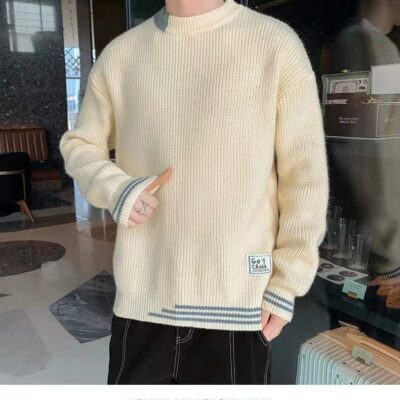 Hàng loạt đợt Plus nhung dày áo len nam cổ tròn 2021 mới mùa thu đông áo len dệt kim sinh viên lót