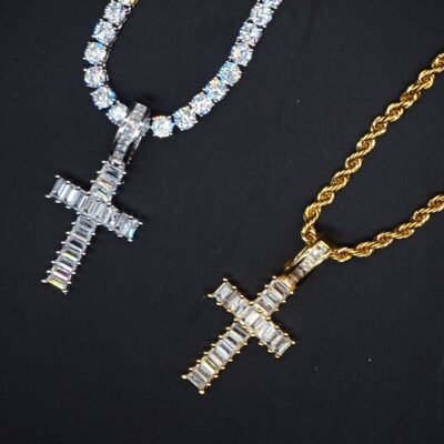 Hàng Mới Về Thang Đính Đá Cubic Zirconia Chéo Hip Hop Amazon AliExpress Phong Cách Nổ HIPHOP Trang Sức Nam Vòng Cổ