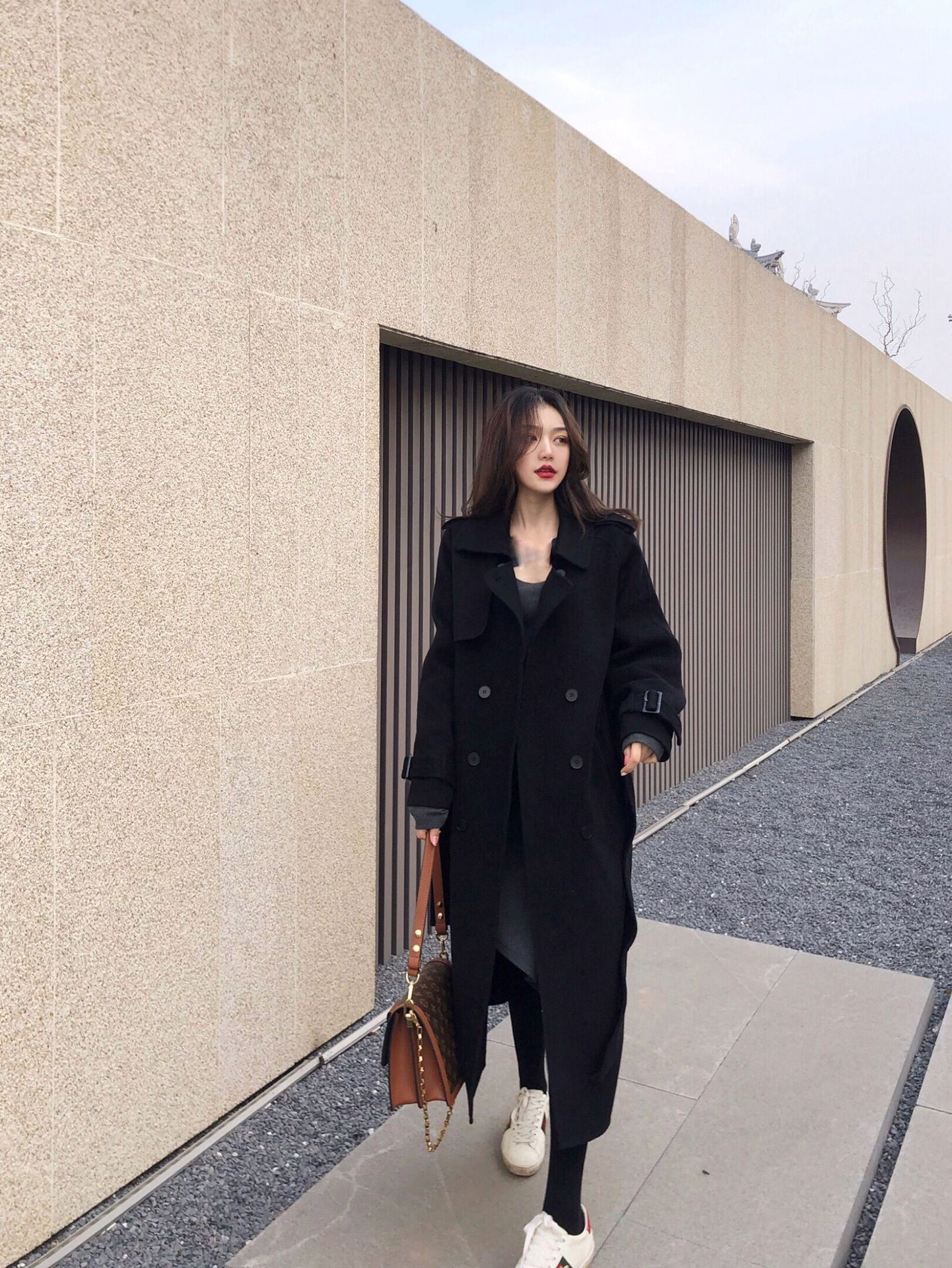 Hàng xuất xưởng 2023 hàng mới 2023 màu xám dài đen cao cấp 100% len nữ