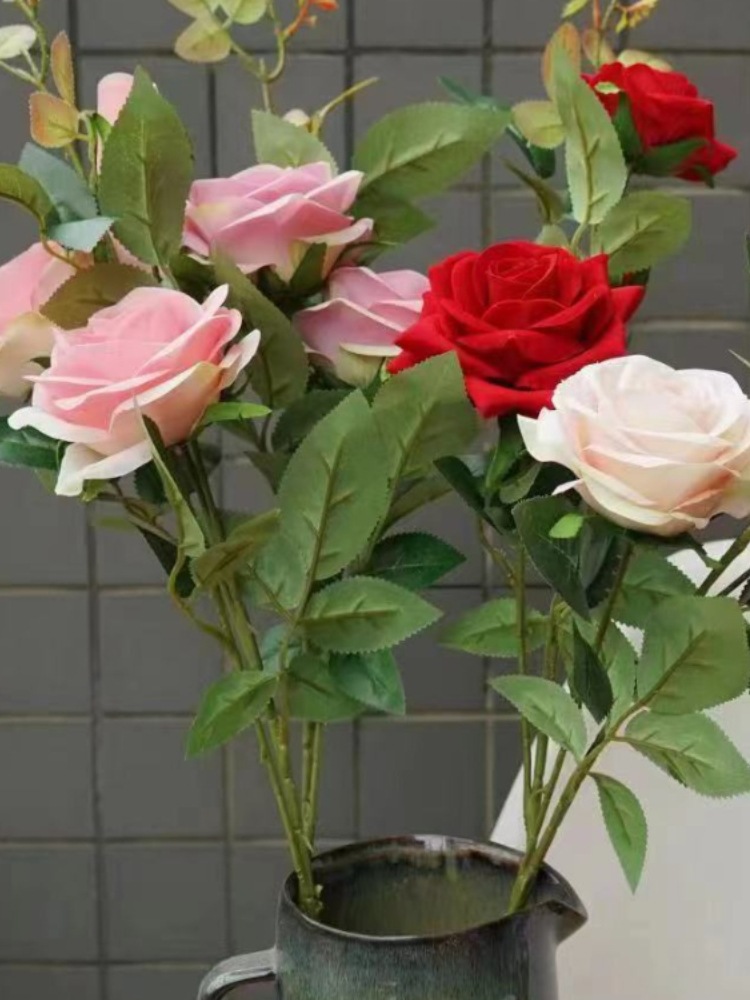 | 玫瑰花假花仿真花摆设客厅花艺摆件轻奢塑料花绢花装饰花 | |