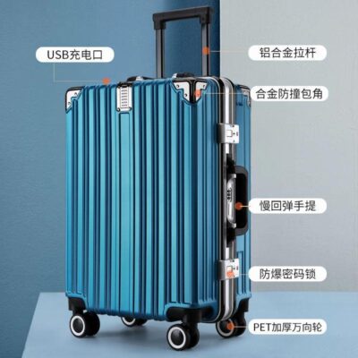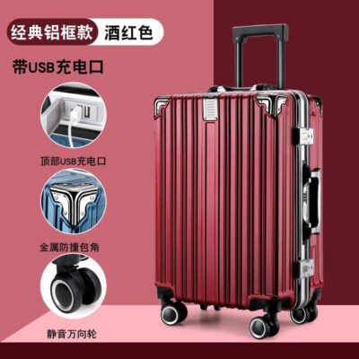 Hành lý khung nhôm xe đẩy loại lớn 20 inch lên máy bay vali 24 inch sạc usb bao da mật khẩu