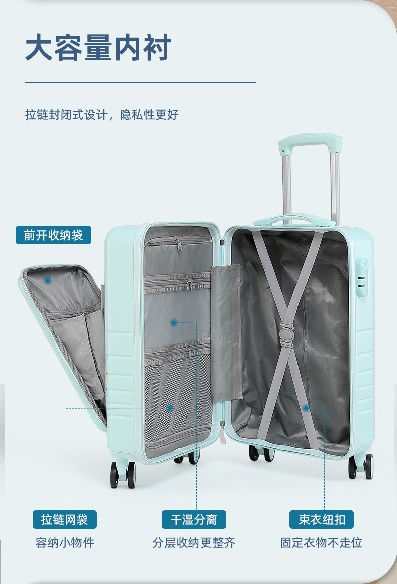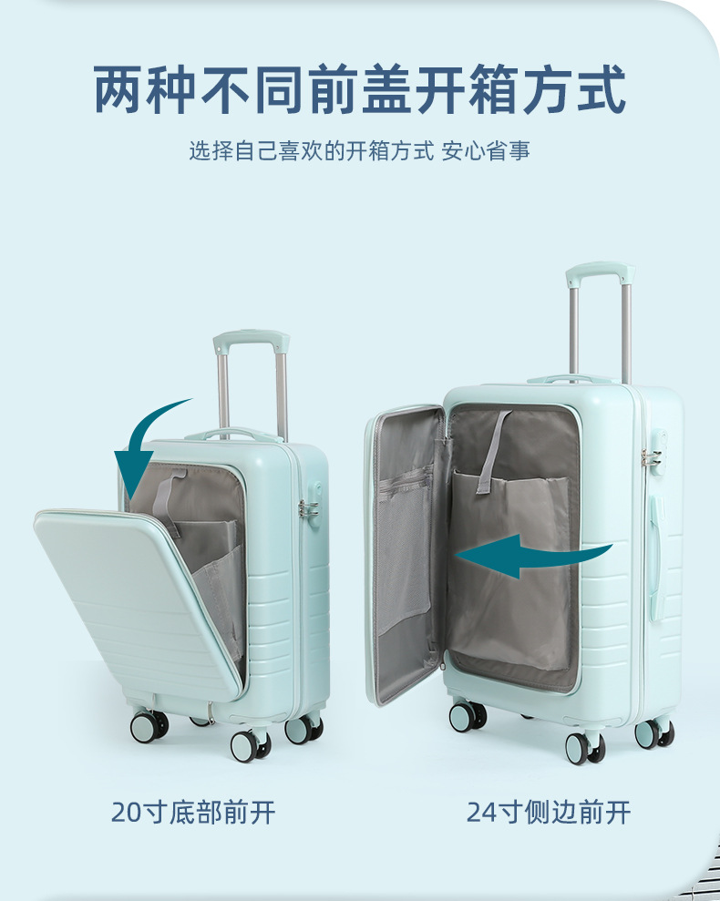 Hành lý lên máy bay mở phía trước Hộp đựng mật khẩu có bánh xe phổ thông sức chứa lớn dành cho nữ Hộp đựng xe đẩy nhẹ mở phía trước 20 inch dành cho nam