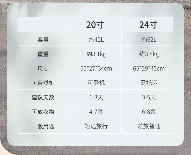 Kích thước hành lý: trung bình Hoa văn: màu trơn Kết cấu lớp lót: polyester Có lớp giãn nở hay không: có Loại nguồn: đốm Màu sắc: đen [324] / trắng [324] / phấn đào [324] / xanh da trời [324] / hồng [ Dây kéo 09] / xanh [Dây kéo 09] / trắng [Dây kéo 09] / đen [Dây kéo 09] / đen [Khung nhôm 09] / trắng [Khung nhôm 09] / hồng [Khung nhôm 09] / xanh [Khung nhôm 09] / Than chì【903】/Bạc【903】/Đen sẫm【903】/Xanh dương【903】/Trắng và Đỏ【013】/Trắng và Hồng【013】/Trắng và Đen【013】/Bạc【013】/Xanh mực 【013】/Xanh đậm【013】Còn hàng: Có Mẫu: 324 Phương pháp xử lý mở phía trước: Con lăn mờ Phong cách: Bánh xe phổ thông có khóa: Có Loại túi bên ngoài: Túi vá bên trong Phân phối hỗ trợ: Phân phối hỗ trợ Loại phụ kiện: Vật liệu tay cầm : ABS+PC Có hoặc không có tấm che mưa: Không xử lý Tùy chỉnh: Có hoặc không Nguồn cung cấp đặc biệt cho xuất khẩu xuyên biên giới: Có Loại khóa: Khóa thông thường Số lượng dây đeo vai: Không có dây đeo Các tình huống áp dụng: Du lịch giải trí Bộ phận mang theo: Tay cầm cứng In LOGO: Có Độ cứng của hành lý: Cứng Các nền tảng hạ nguồn chính: ebay/Amazon/wish/AliExpress/Independent station/LAZADA/LAZADA đã ủy quyền cho các thương hiệu tư nhân: Có Giới tính áp dụng: Unisex/Nam và Nữ Trọng lượng: 3,1-4,4kg Loại hàng: Toàn bộ danh sách Năm Mùa: 2022 Mùa đông Các dịp tặng quà áp dụng: Đám cưới/Sinh nhật/Kỷ niệm chuyến du lịch/Lễ hội/Tân gia/Hội chợ thương mại/Quảng cáo khuyến mãi/Lợi ích nhân viên/Lễ kỷ niệm/Quà tặng doanh nghiệp/Lễ khai mạc/Lễ trao giải/Kỷ niệm giải thưởng Chức năng: Chống trộm /Hộp đựng máy bay/Nắp mở phía trước/Nắp mở phía trước Độ cứng: Cứng Có hoặc không có thanh giằng: Có Kích thước: 20 inch/22 inch/24 inch/26 inch/ 26 inch Phương pháp mở: túi khóa kéo Cấu trúc bên trong: túi ẩn khóa kéo/túi điện thoại di động/ túi chứng chỉ/túi khóa kéo xen kẽ/túi máy tính/túi máy tính Phong cách: Du lịch giải trí Khu vực bán hàng chính: Châu Âu/Nam Mỹ/Bắc Mỹ/Bắc Mỹ Dung tích trên và dưới: 36-55L
