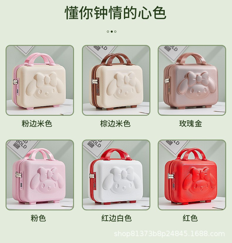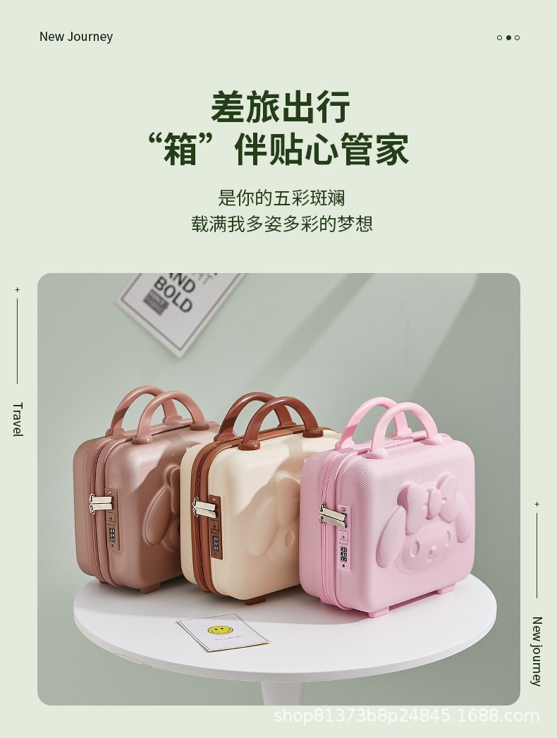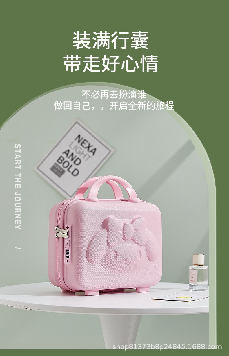 Hành lý xách tay nữ hộp đựng mỹ phẩm 14 inch vali nhỏ kích thước nhỏ nhẹ và dễ thương anime 3D thỏ mật khẩu túi