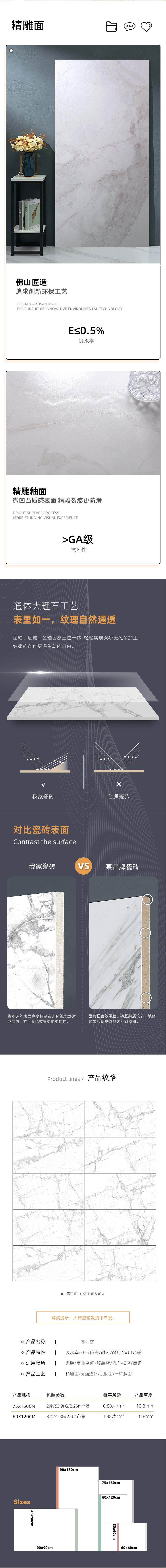 Hanjiang tuyết toàn thân gạch đá cẩm thạch 600×1200 gạch lát nền phòng khách phòng tắm màu trắng sữa gạch lát nền nhà bếp
