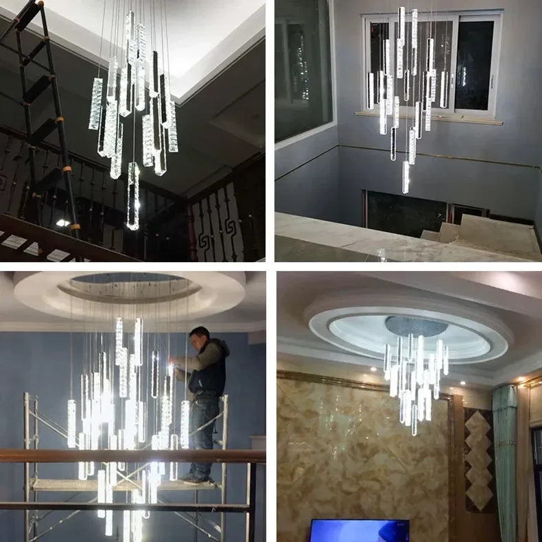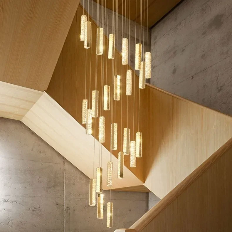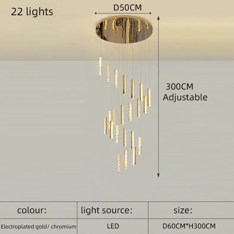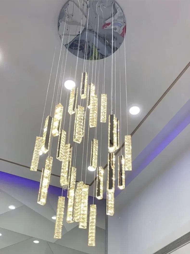 Postmodern Stairled LED Long Chandelier Crystal Pendant Light Staircase Rduplex Building Lighting Villa Luxury Living Room Lamp