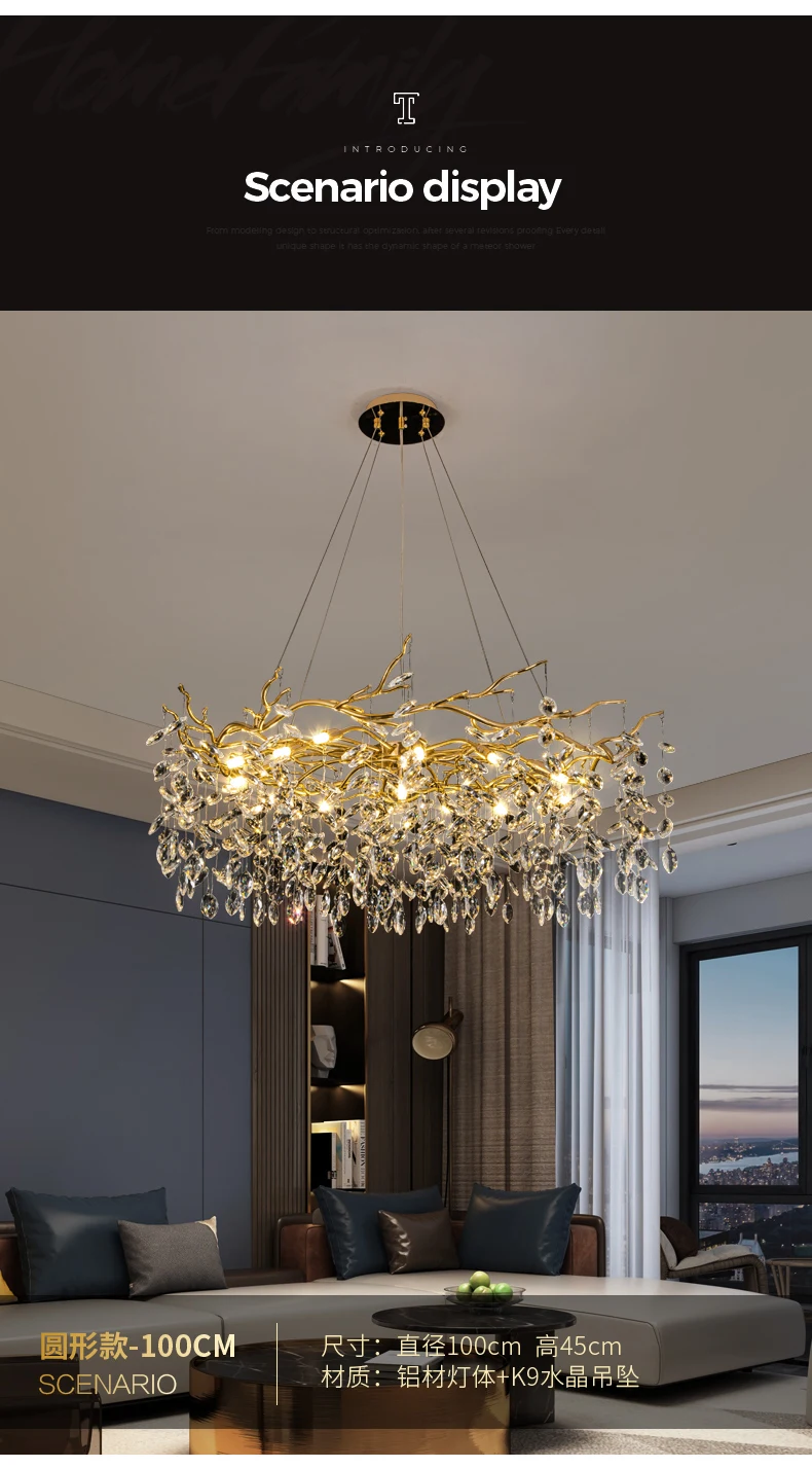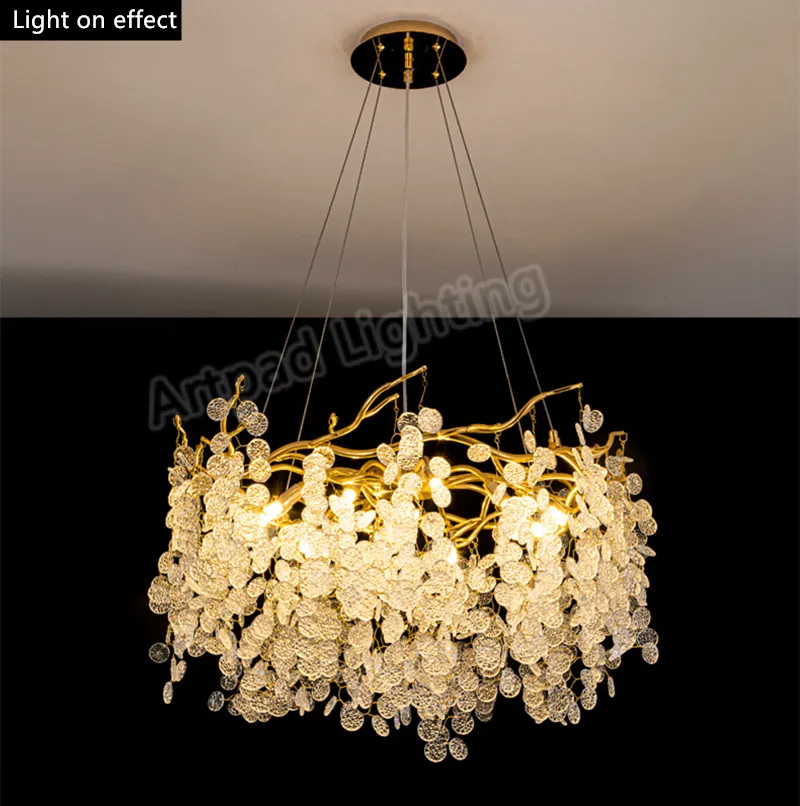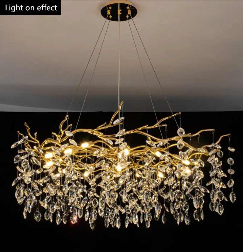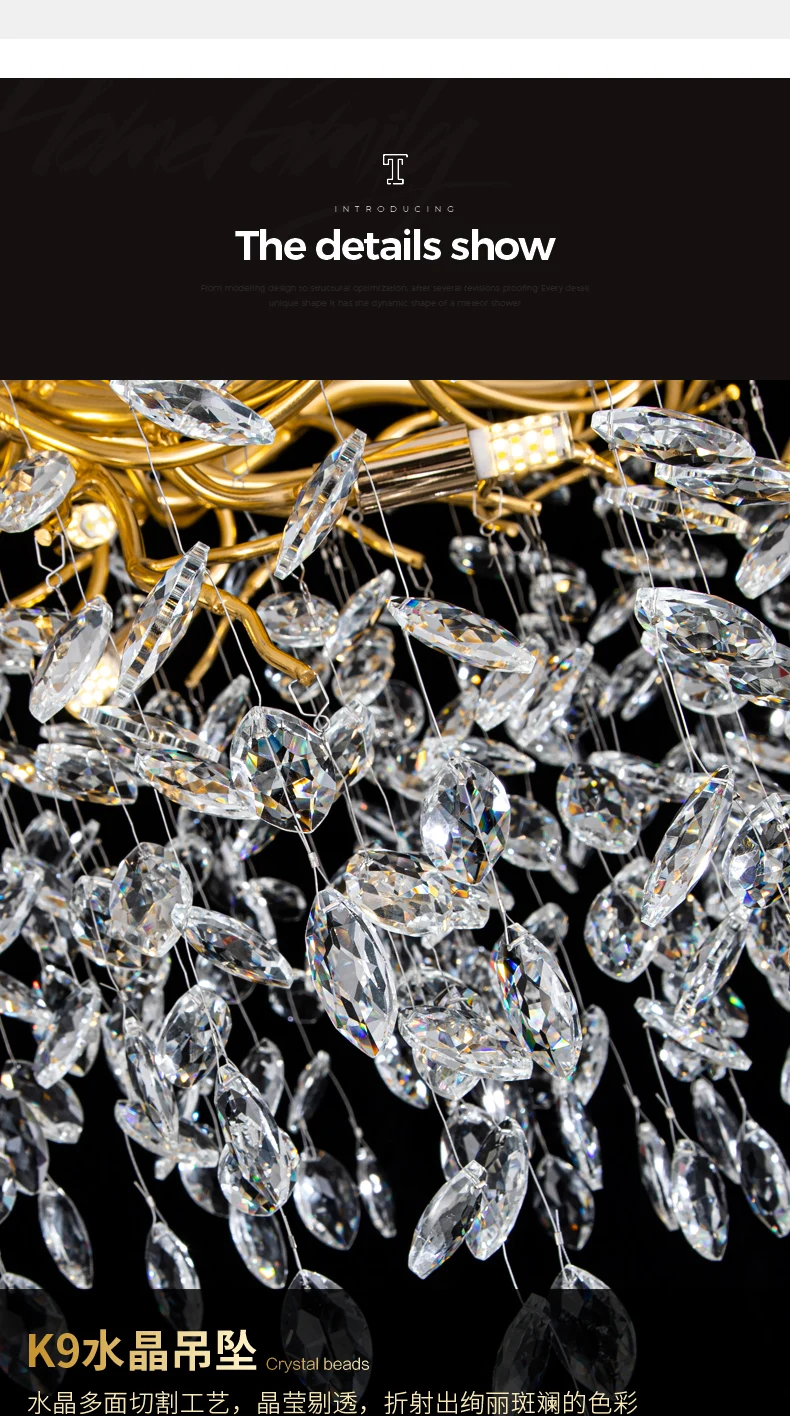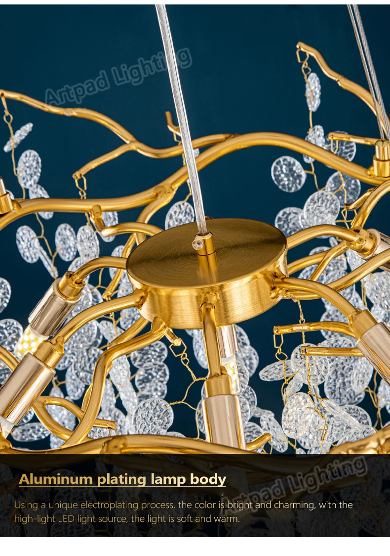 Hậu hiện đại Đèn chùm LED pha lê lớn Phòng khách sang trọng Mặt dây chuyền Đèn Nhánh vàng Lustre biệt thự khách sạn Chiếu sáng trang trí. Quý khách có nhu cầu mua Đèn chùm nhập khẩu vui lòng liên hệ với chúng tôi để được tư vấn hỗ trợ. Dịch vụ mua hàng Trung Quốc sẽ hỗ trợ quý khách mua hàng từ nhà cung cấp và giao tới tận tay quý khách hàng..Số kiểu:PL6027 Nguồn điện:AC Loại lắp đặt:Nắp gắn bán phẳng Loại bóng:Kính trong suốt Hướng bóng:Lên và xuống Có thể điều chỉnh độ sáng:Không Lớp hoàn thiện:SẮT Loại công tắc:Không Bảo hành:3 năm Loại đế:G9 Phong cách:Phong cách hiện đại Nguồn sáng: Bóng đèn LED Chất liệu thân: nhôm Chứng nhận: CCC, FCC Là bóng đèn đi kèm: Có Tên thương hiệu: Ruibopad Xuất xứ: Trung Quốc đại lục Loại sản phẩm: Đèn chùm