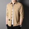 Hazzys Haggis chính thức mùa xuân và mùa hè mới của nam giới áo sơ mi dài tay đơn giản thoáng khí áo sơ mi cotton màu trơn xu hướng nam giới