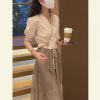 Hazzys Haggis váy ngắn tay ngắn màu đen váy polo dài giữa mùa xuân và mùa hè quần áo phụ nữ mới