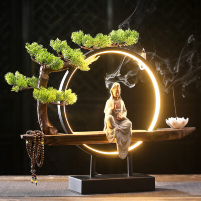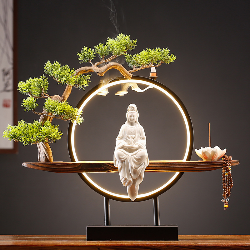 Hệ thống chiếu sáng kiểu Trung Quốc mới chào đón khách với hương thơm chảy ngược của cây thông Trang trí tượng Phật Quan Âm Bồ Tát trong nhà lò hương liệu lớn trong nhà sáng tạo