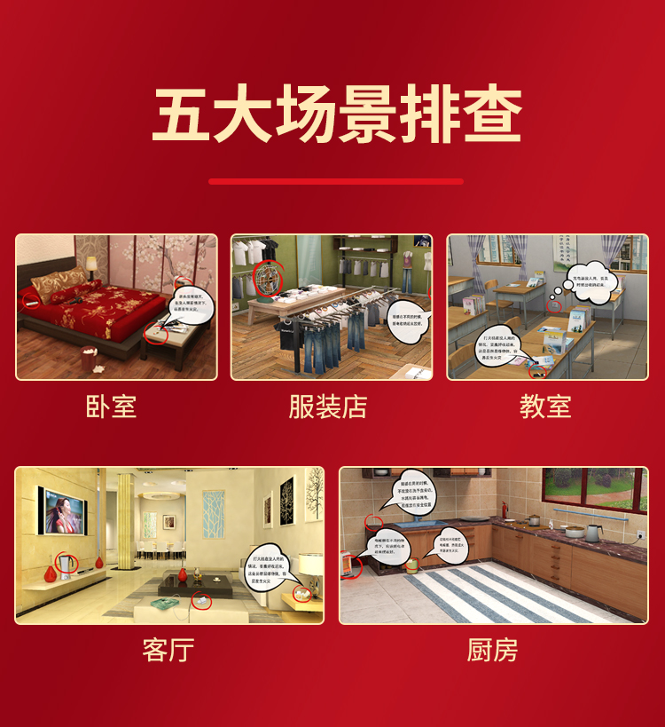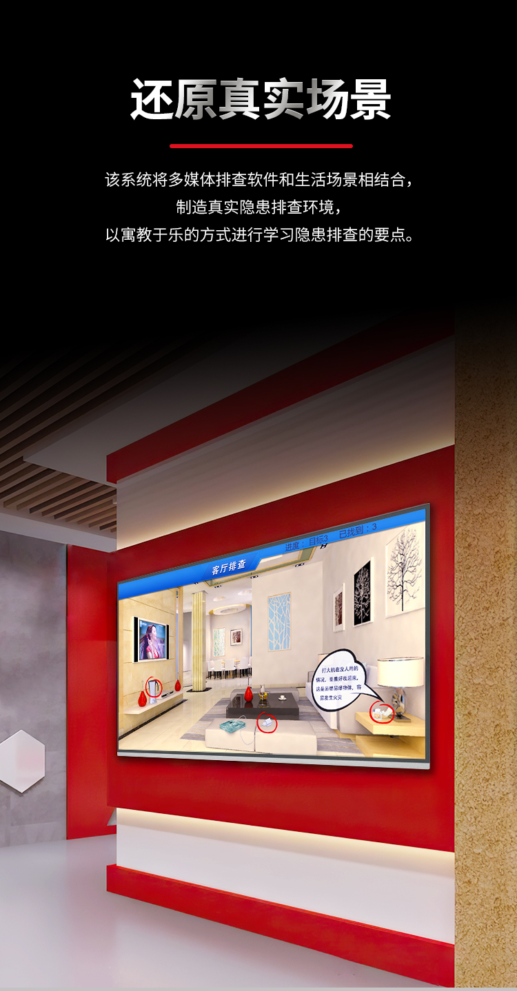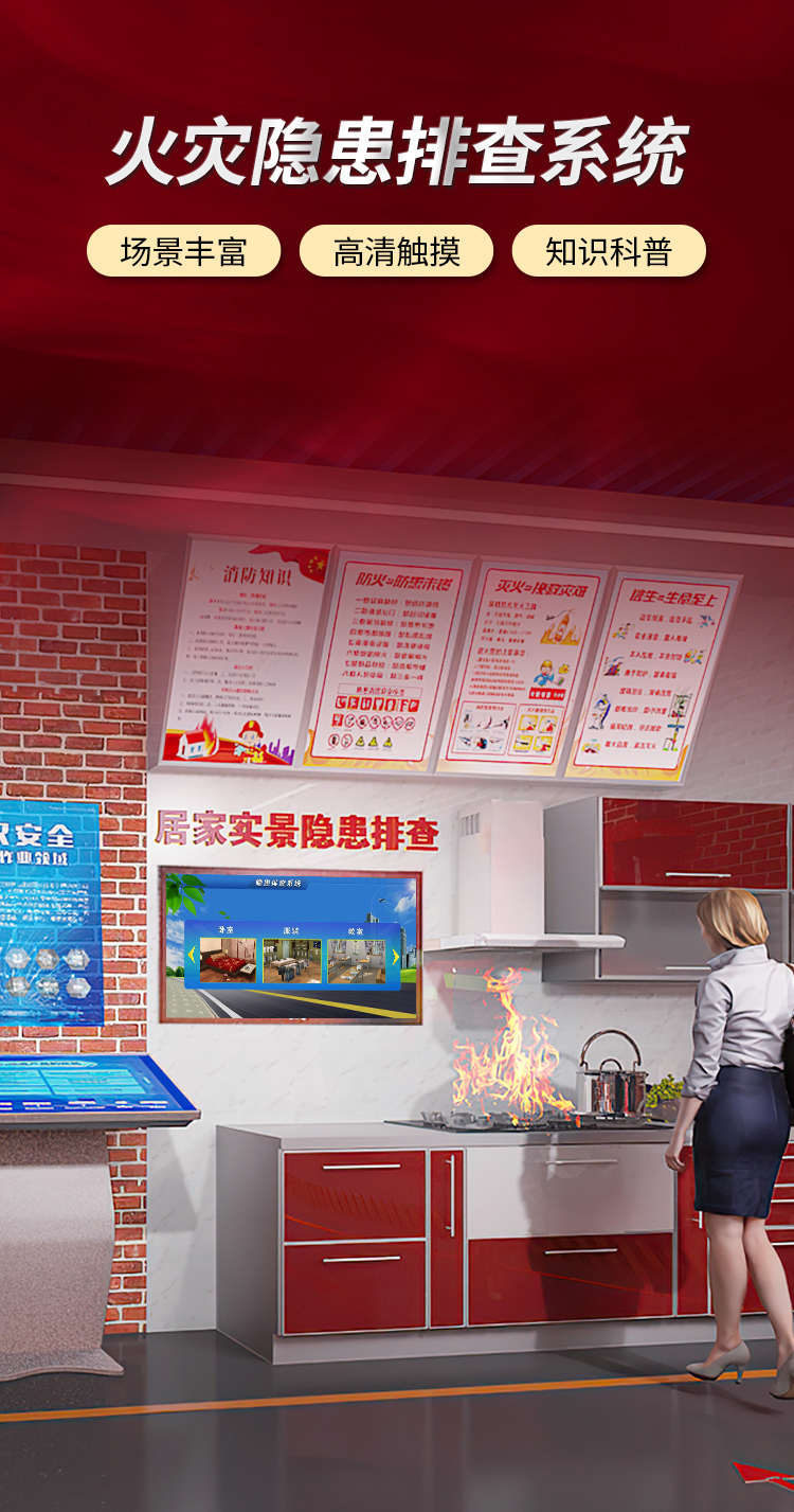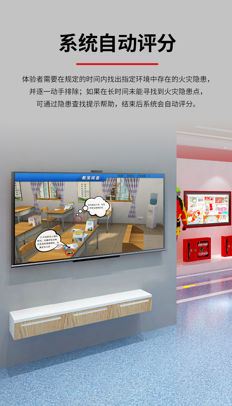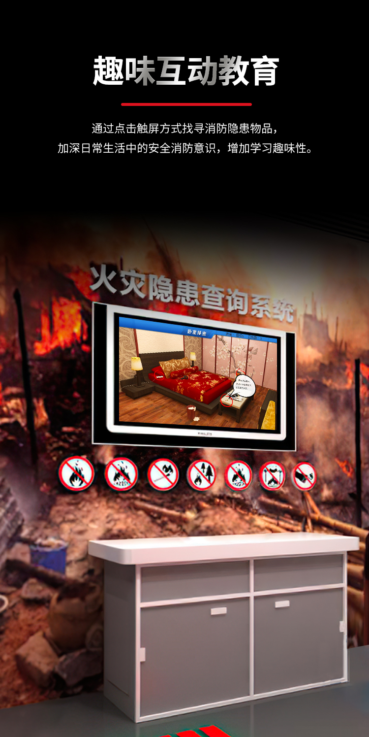 Hệ thống điều tra mối nguy hiểm về cháy nổ trong phòng ngủ Phần mềm tìm kiếm mối nguy hiểm về cháy phòng ngủ Thiết bị tương tác VR Phòng triển lãm về phòng cháy chữa cháy