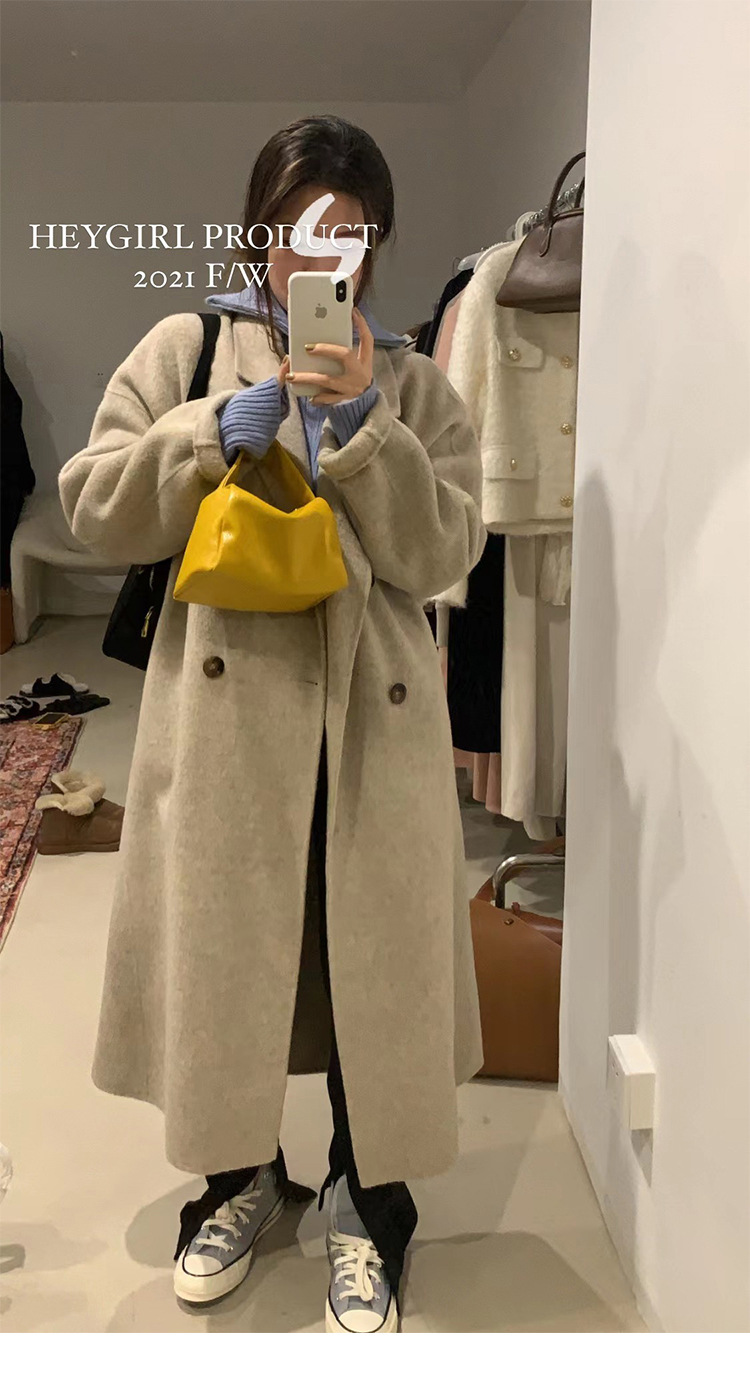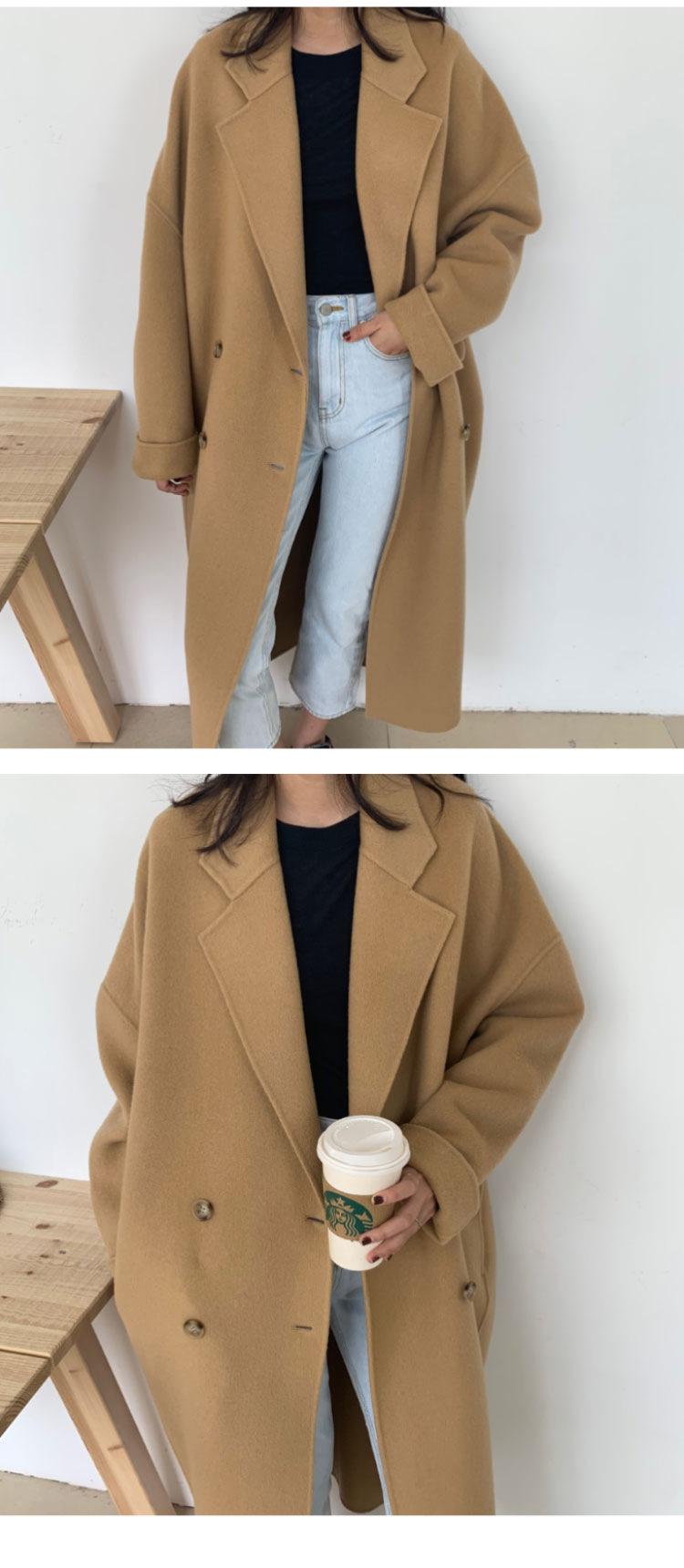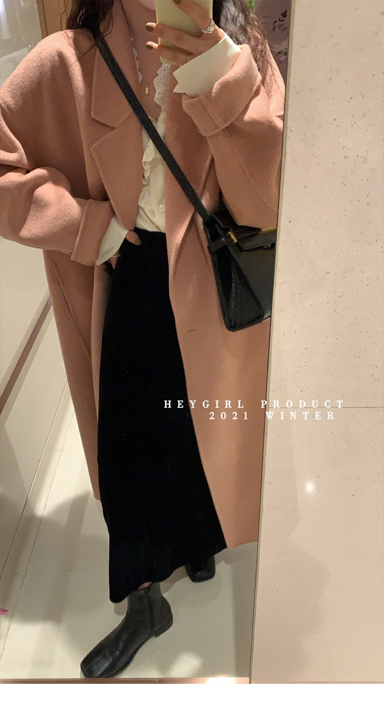 Hei Ge giống phong cách Hàn Quốc kén khâu tay hai mặt Áo khoác len nữ phiên bản cổ điển khí chất Áo khoác len phù hợp với mọi lứa tuổi