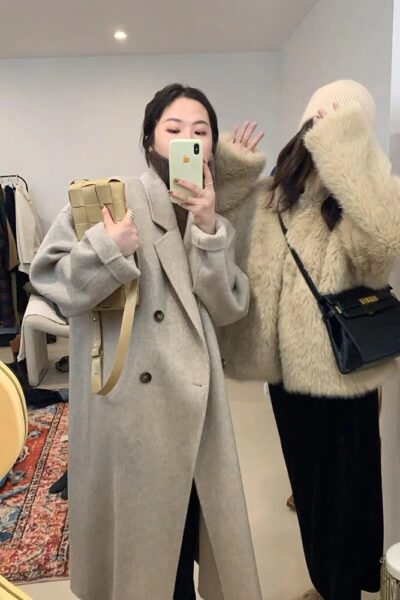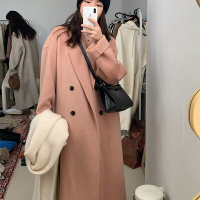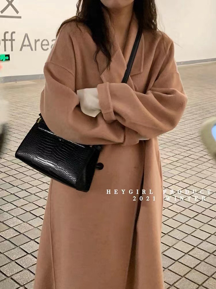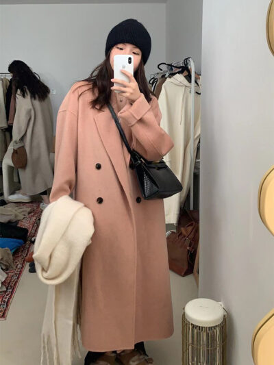 Hei Ge giống phong cách Hàn Quốc kén khâu tay hai mặt Áo khoác len nữ phiên bản cổ điển khí chất Áo khoác len phù hợp với mọi lứa tuổi