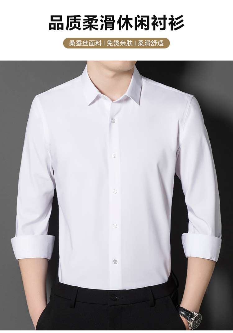 Hengyuanxiang dâu tằm áo sơ mi nam dài tay rắn màu cao cấp của nam giới trung niên kinh doanh giản dị áo sơ mi lụa phi sắt mỏng