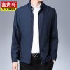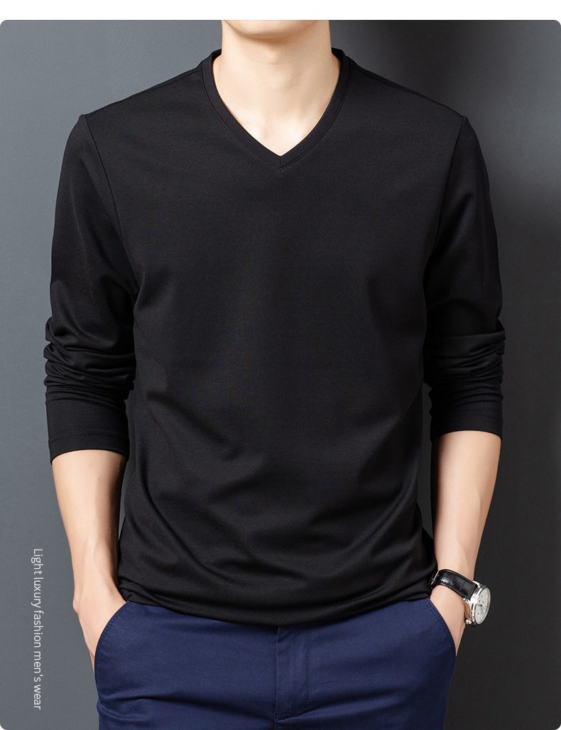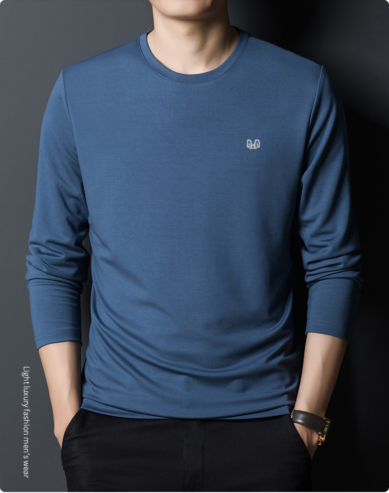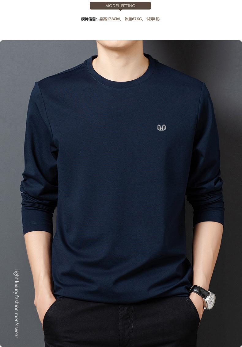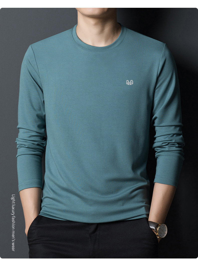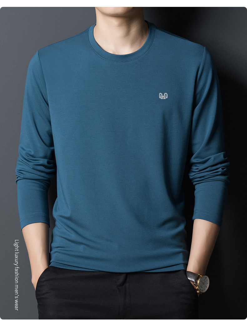 Hengyuanxiang mùa xuân thanh niên nam trung niên áo phông lụa dài tay cổ tròn thêu màu đồng nhất áo phông phía dưới áo sơ mi