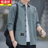 Hengyuanxiang mùa xuân và mùa thu bông tinh khiết ba phần tư tay áo sơ mi nam thường mỏng dài tay áo sơ mi nam áo khoác công sở