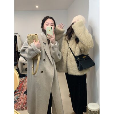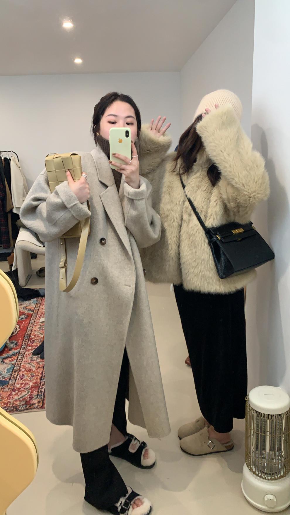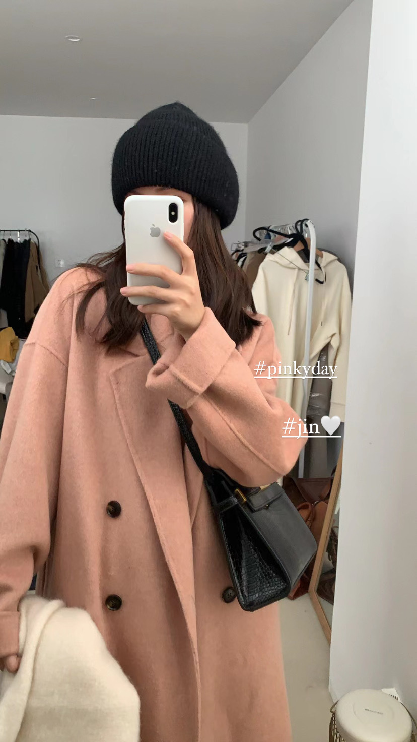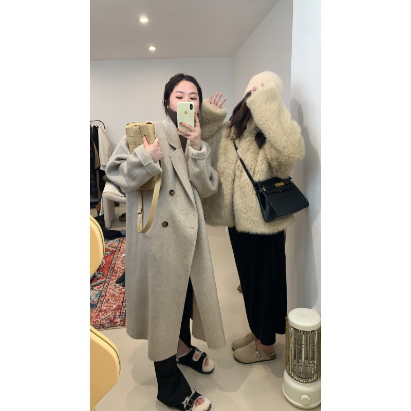 HEYGIRL đen anh trai cổ điển Hàn Quốc blogger 100% cừu áo khoác mùa đông của phụ nữ 2 mặt áo khoác len cashmere
