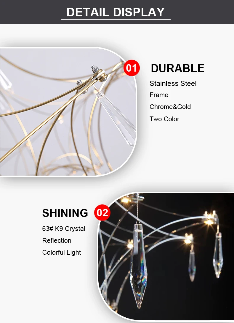 Hiện Đại Đèn Treo Lustre Phòng Khách Ăn Phòng Ngủ Treo Đèn LED Tối Giản Đom Đóm Đèn Chùm Pha Lê. Quý khách có nhu cầu mua Đèn chùm nhập khẩu vui lòng liên hệ với chúng tôi để được tư vấn hỗ trợ. Dịch vụ mua hàng Trung Quốc sẽ hỗ trợ quý khách mua hàng từ nhà cung cấp và giao tới tận tay quý khách hàng..Số kiểu: V2132 Các tính năng: Đèn chùm tối giản led pha lê sang trọng Firefly Điện áp: 110-240V Nguồn điện: DC Loại lắp đặt: Gắn phẳng Loại bóng râm: CRYSTAL Hướng bóng: Lên & Xuống Có thể điều chỉnh độ sáng: Không Hoàn thiện: Đánh bóng Loại công tắc: Chạm vào Bật/Tắt Công tắc Bảo hành:2 Loại đế: Nêm Kiểu dáng: Phong cách hiện đại Nguồn sáng: Bóng đèn LED Chất liệu thân: THÉP KHÔNG GỈ Chứng nhận: ce, UL Là bóng đèn Bao gồm: Có Tên thương hiệu: visiluce Xuất xứ: Trung Quốc đại lục Loại sản phẩm: Đèn chùm