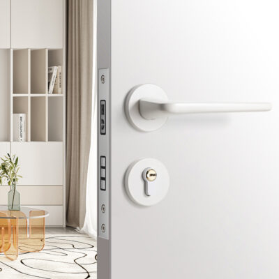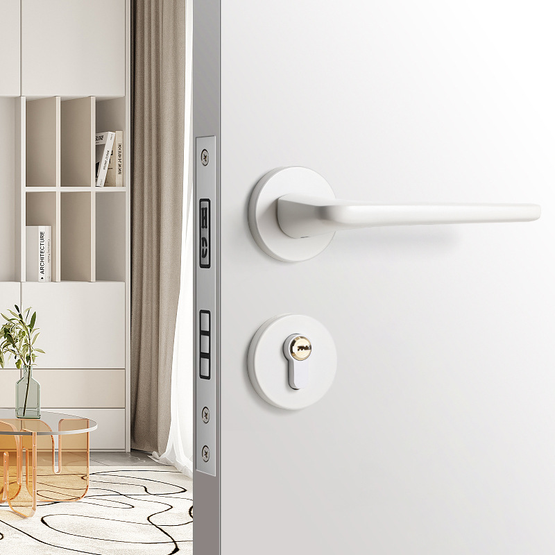 Hiện Đại Đơn Giản Màu Trắng Kem Phòng Ngủ Cửa không ồn Hút Từ Phòng Cửa Nhà Trong Nhà Gỗ Khóa cửa Bên Trong Tay Nắm Cửa. Khóa cửa nhập khẩu theo yêu cầu.