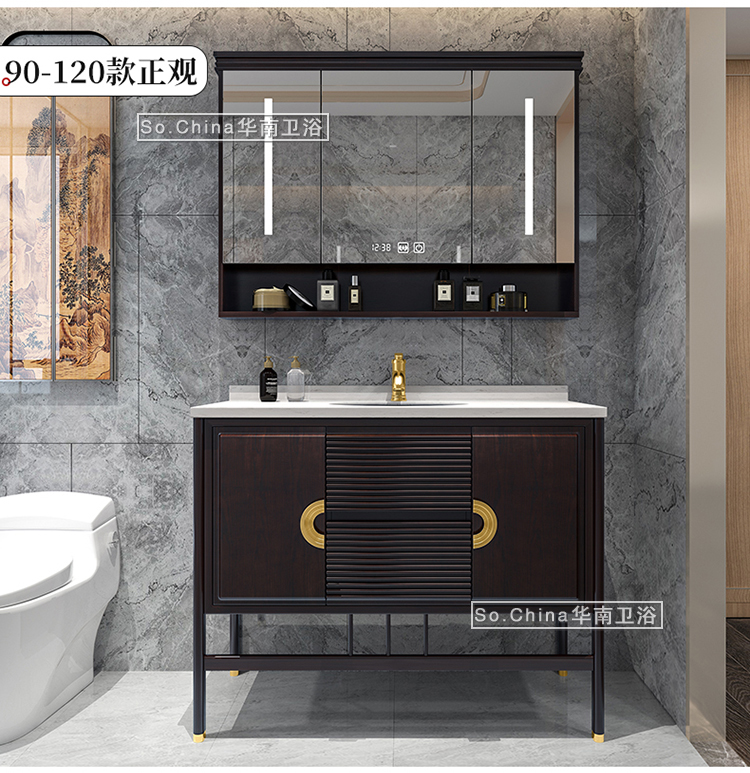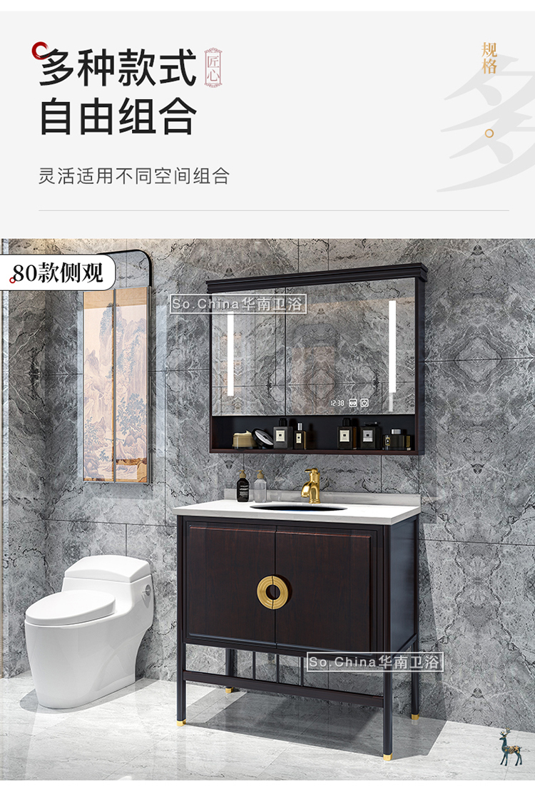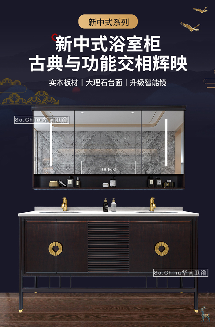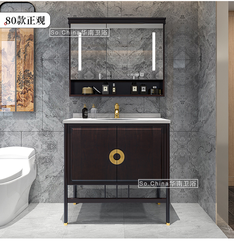 Hiện đại mới phong cách Trung Quốc bồn rửa đôi phòng tắm tủ kết hợp bồn rửa bồn rửa bằng gỗ rắn bồn rửa đôi nhà vệ sinh