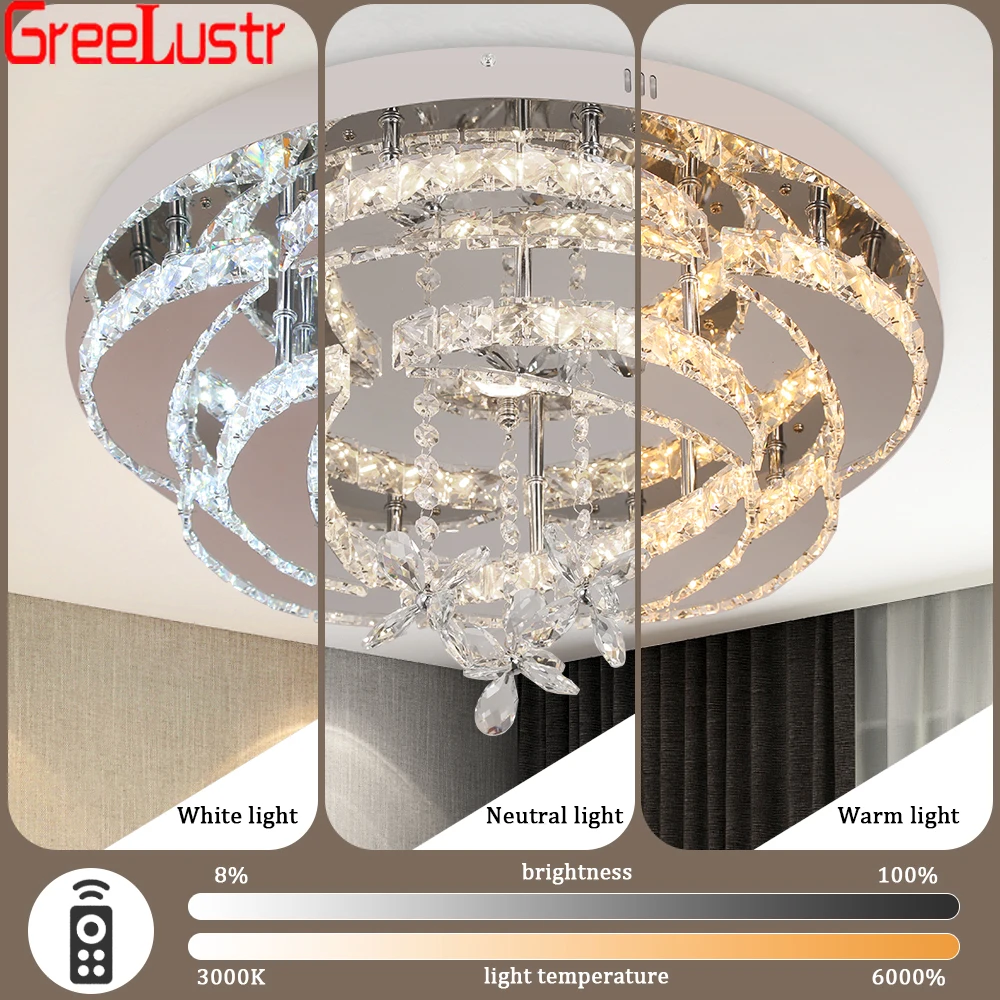 Modern Crystal Ceiling Chandelier Raindrop Flowers Remote Led Chandelier Ceiling Light Fixtures for Living Room Dimming lamps