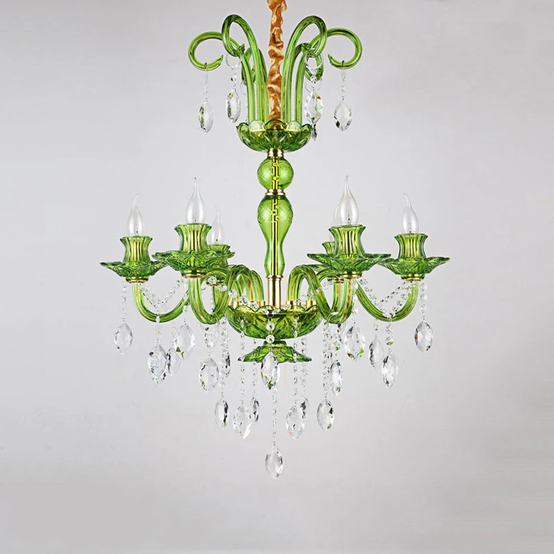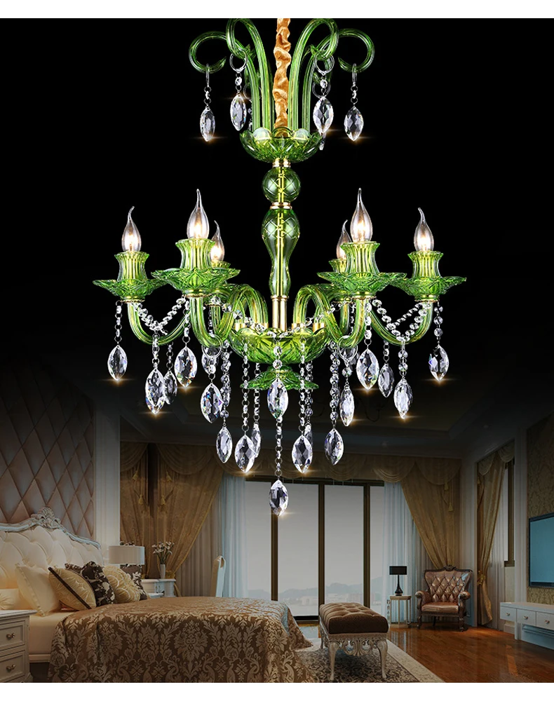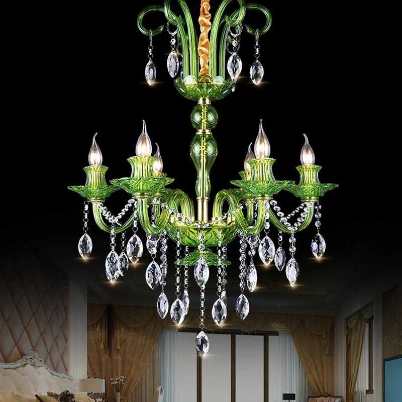 Modern Luxury Candle Crystal Chandelier Bedroom Hotel Lobby Corridor Green Pendent Lamp Bar Restaurant Wave Lotus Leaf Led Light