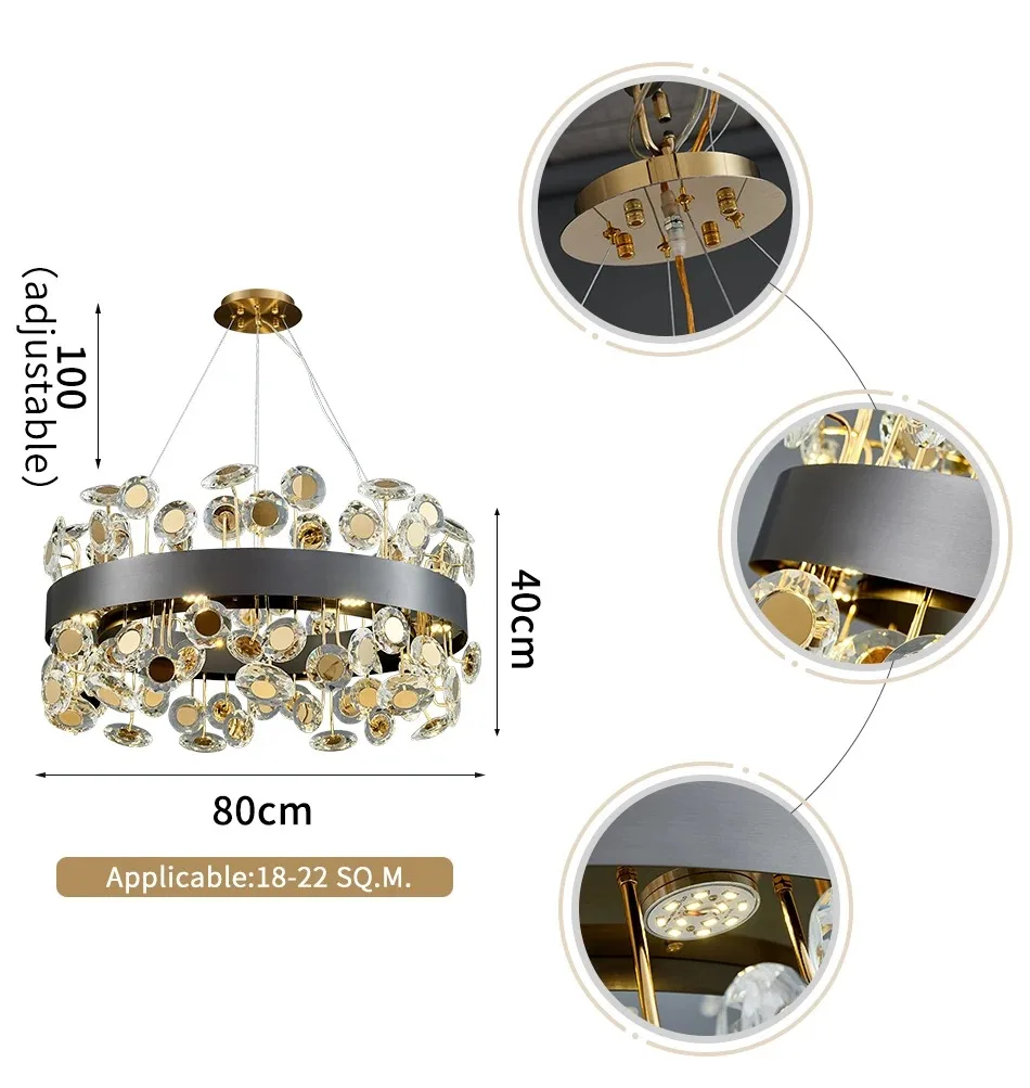 Hiện Đại Sang Trọng Pha Lê Led Đèn Chùm Chiếu Sáng Phòng Ăn Mặt Dây Đèn Phòng Khách Treo Đèn Trang Trí Phòng Ngủ Lustre Fixtur. Quý khách có nhu cầu mua Đèn chùm nhập khẩu vui lòng liên hệ với chúng tôi để được tư vấn hỗ trợ. Dịch vụ mua hàng Trung Quốc sẽ hỗ trợ quý khách mua hàng từ nhà cung cấp và giao tới tận tay quý khách hàng..Số hiệu: Đèn treo trang trí nhà cửa Tính năng: Tròn, Sang trọng, Đèn trần Điện áp: 110V, 120V, 130V, 220V, 230V, 240V, 260V, 110-240V, 90-260V Nguồn điện: AC Loại lắp đặt: Loại bóng đèn gắn phẳng :CRYSTAL Hướng bóng:Xuống có thể điều chỉnh độ sáng:Không Lớp hoàn thiện:Thép đánh bóng Loại công tắc:Công tắc bật/tắt cảm ứng Bảo hành:2 năm Loại đế: Nêm Phong cách:Phong cách hiện đại Nguồn sáng:Bóng đèn LED Chất liệu thân: THÉP KHÔNG GỈ Chứng nhận:CCC,ce, Bao gồm bóng đèn CQC,EMC,FCC,GS,LVD,pse,ROHS,SAA,UL,VDE: Có Tên thương hiệu: Steadlong Xuất xứ: Trung Quốc đại lục Loại sản phẩm: Đèn chùm Màu sắc: Vàng/đen Chất liệu chính: Pha lê, Bóng đèn bằng thép không gỉ: Nơi đặt chip LED: Phòng ăn và phòng khách