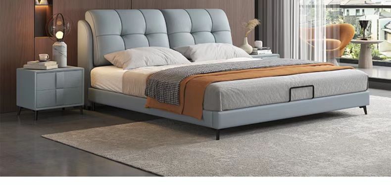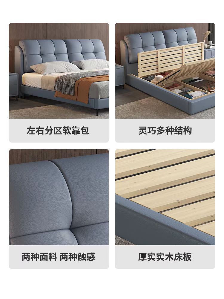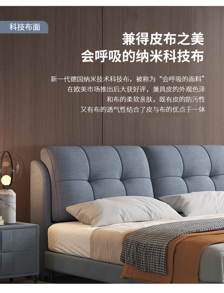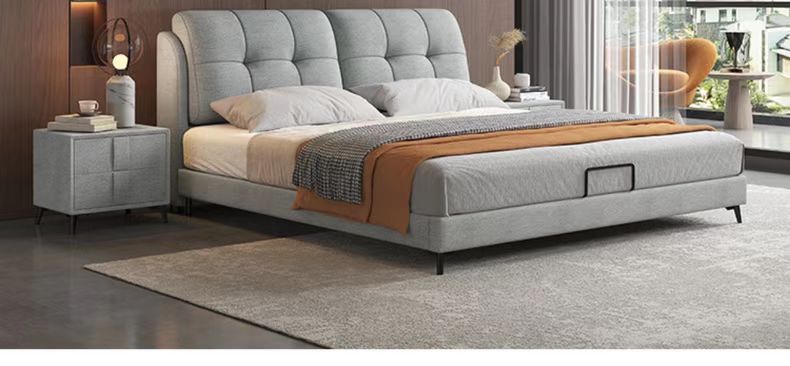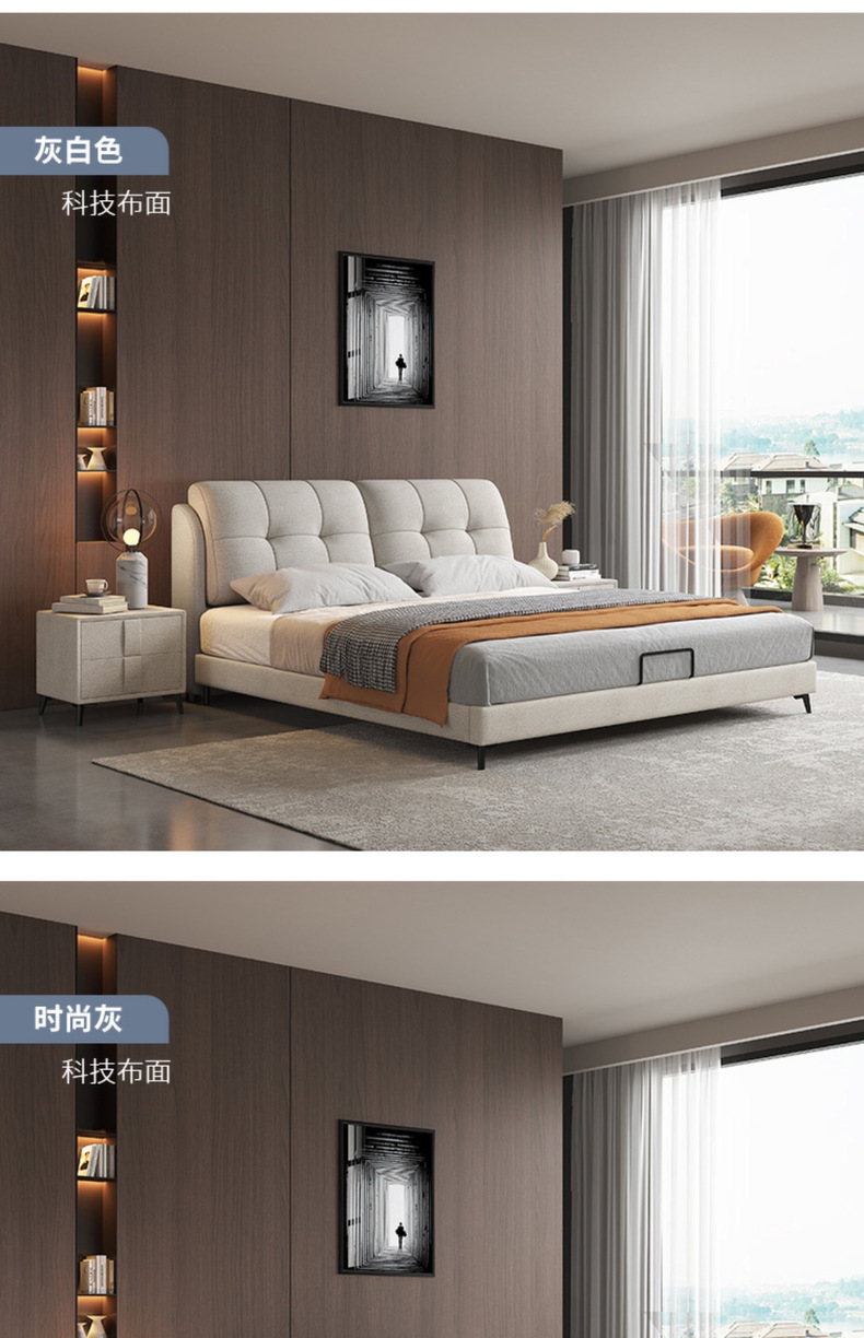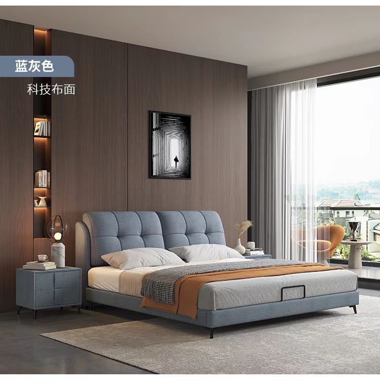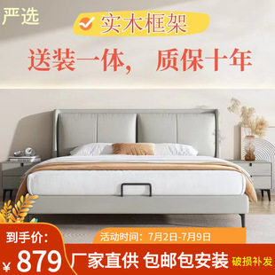 Hiện đại tối giản giường da 1,5m phòng ngủ chính hộp cao lưu trữ giường cưới nhẹ sang trọng đôi túi mềm công nghệ vải giường vua