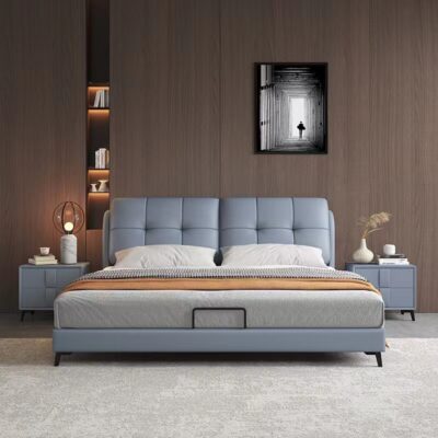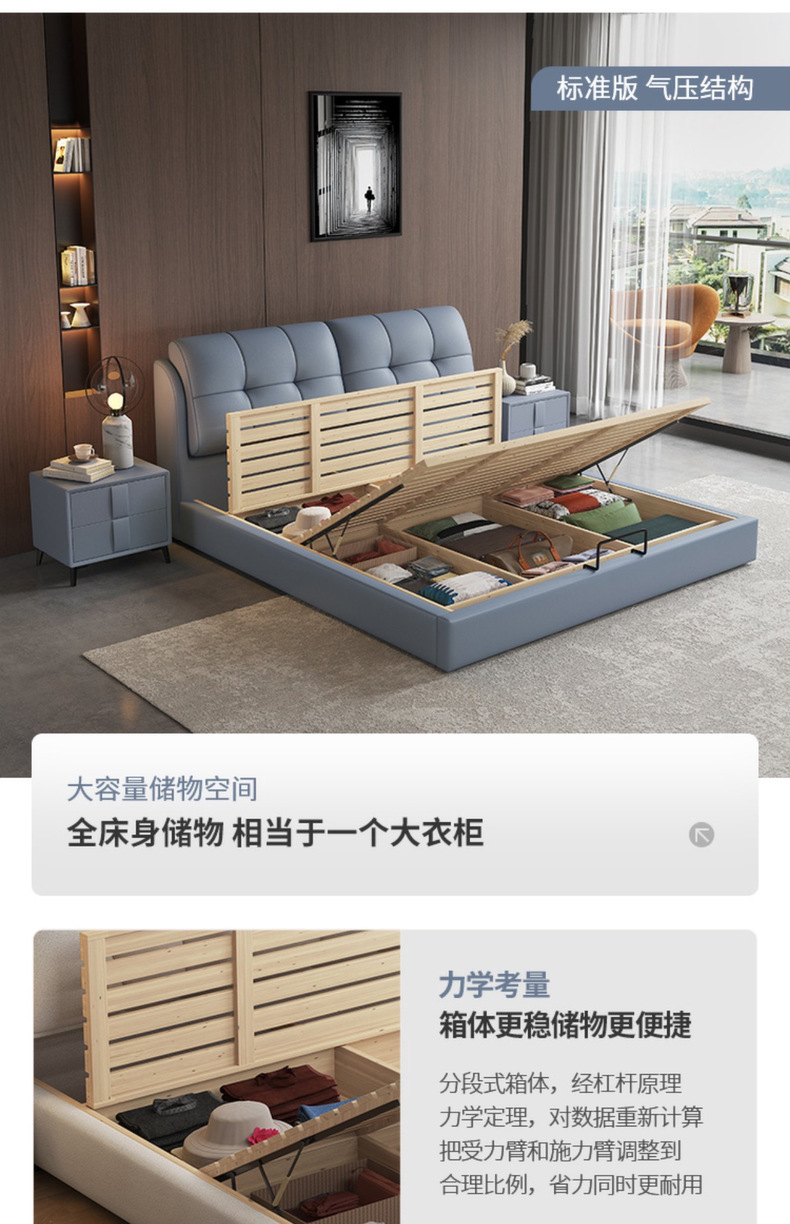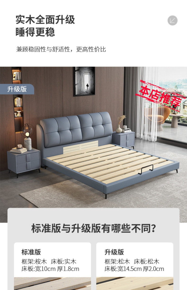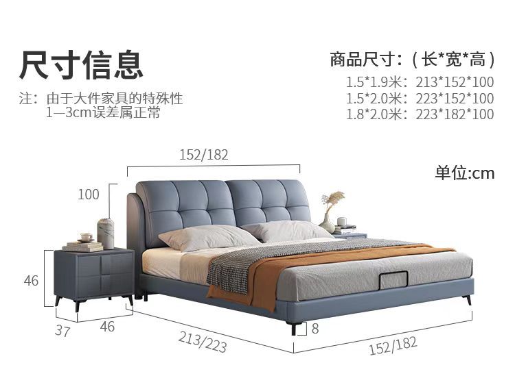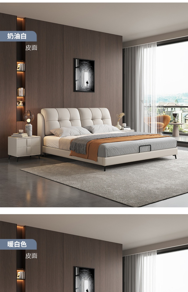 Hiện đại tối giản giường da 1,5m phòng ngủ chính hộp cao lưu trữ giường cưới nhẹ sang trọng đôi túi mềm công nghệ vải giường vua