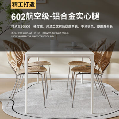 Hình chữ nhật Phong cách Ý tối giản hiện đại đơn giản nhẹ nhàng nội thất sang trọng kết hợp bàn ghế đá phiến, Bàn ăn đá phiến Delifeng.