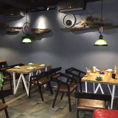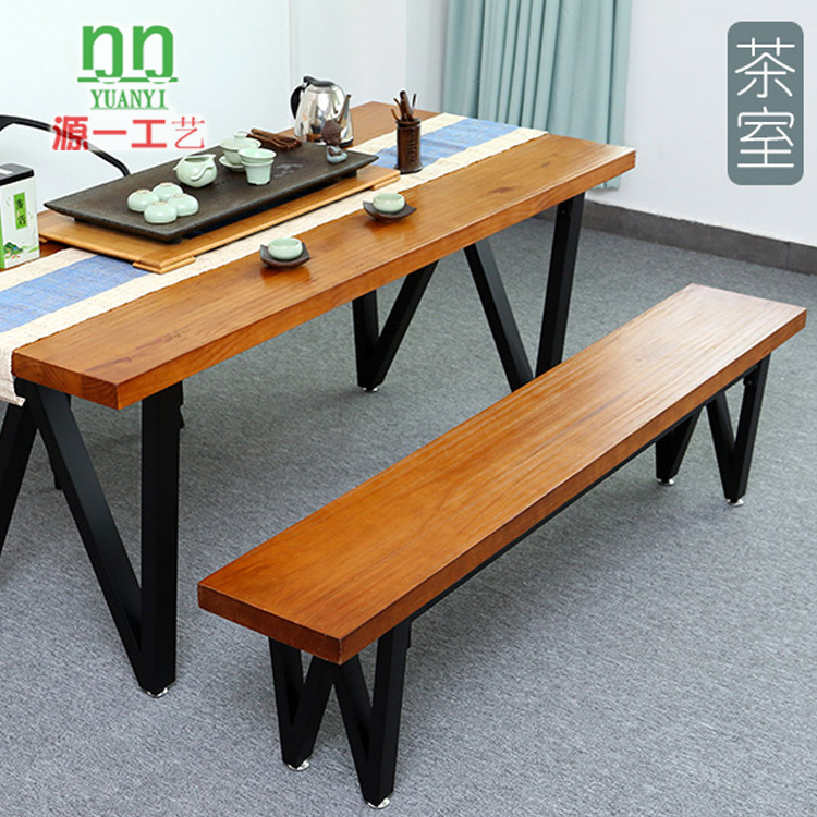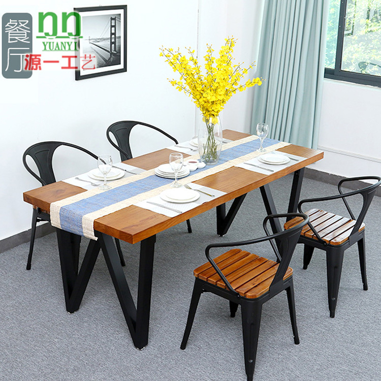 Hình chữ nhật Retro Mỹ loft văn phòng bàn hội nghị sắt rèn thanh gỗ nhà hàng cà phê kết hợp bàn ghế