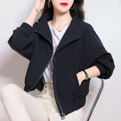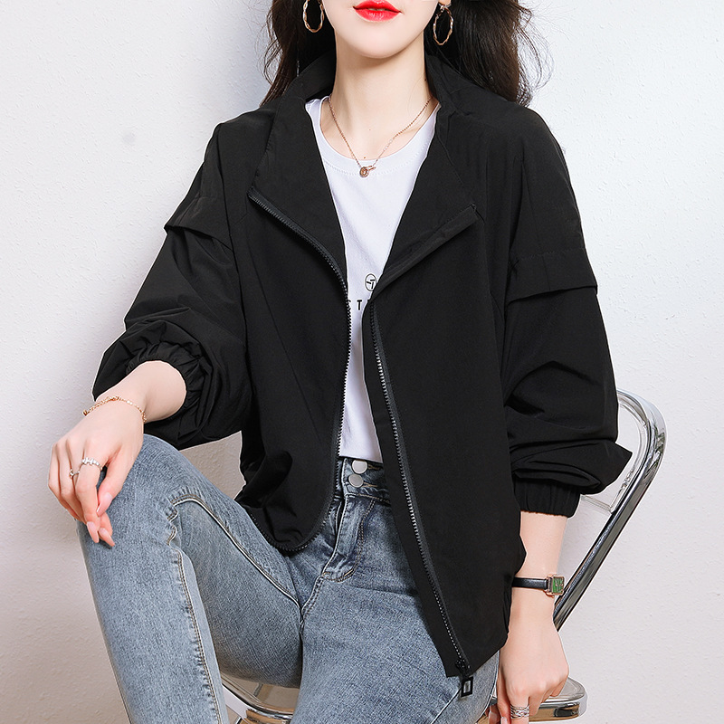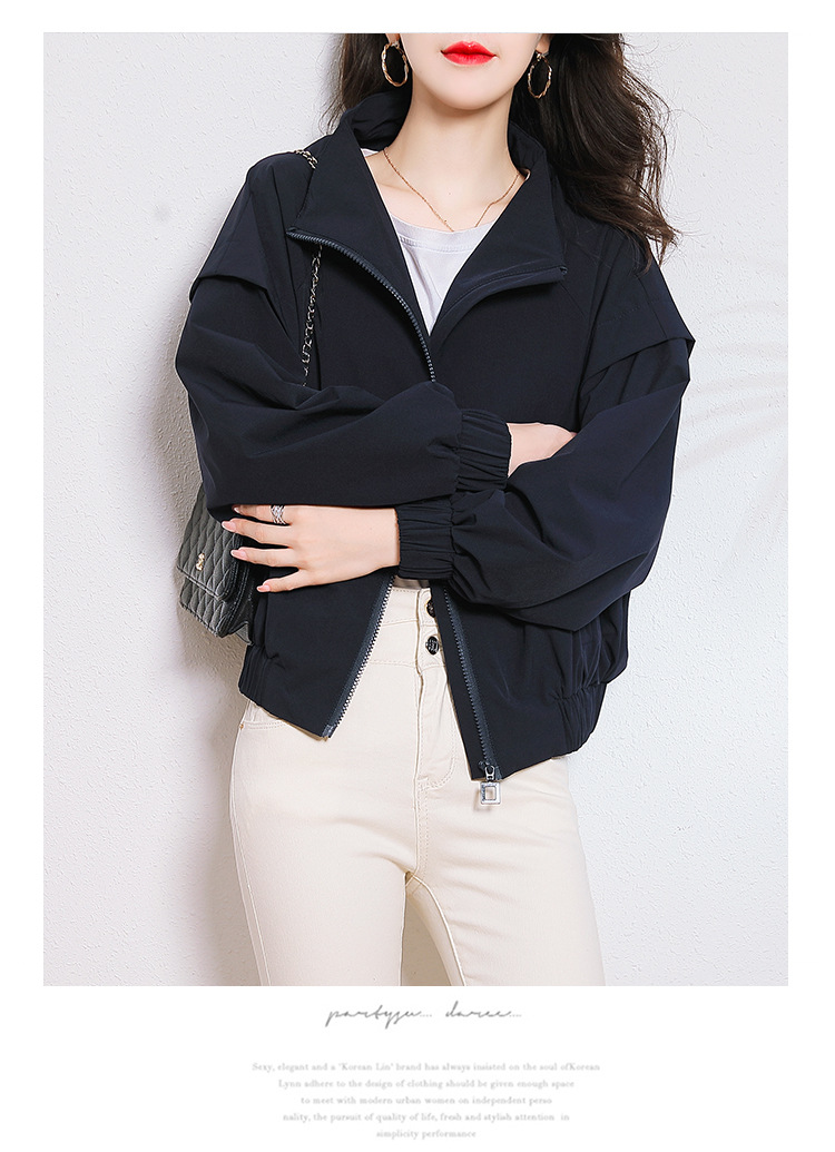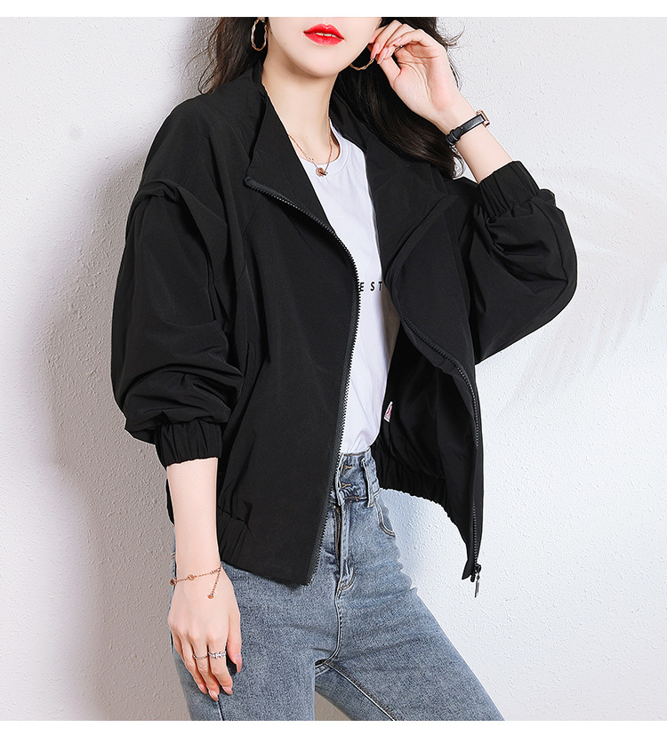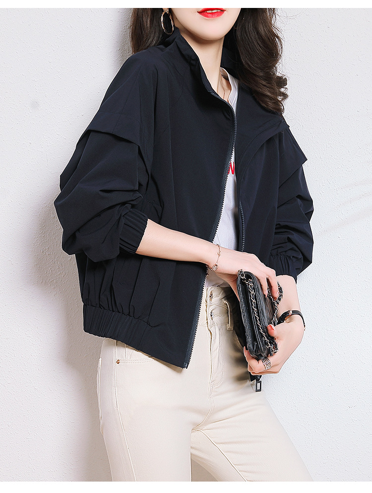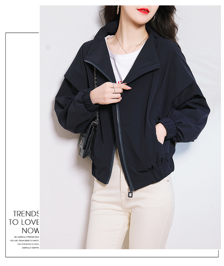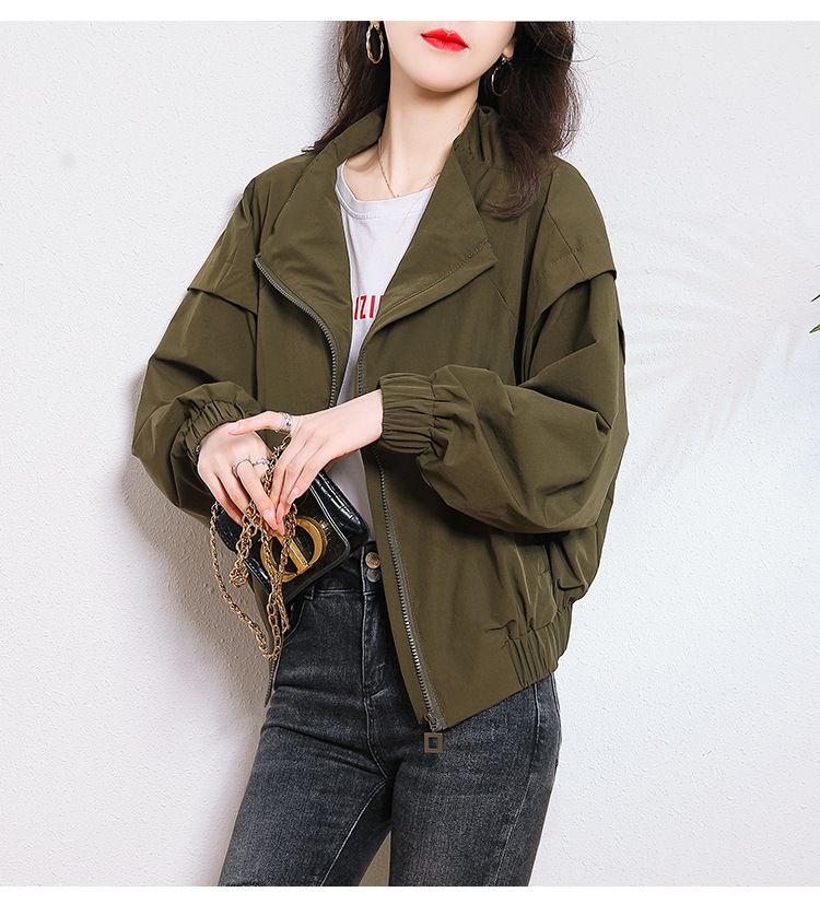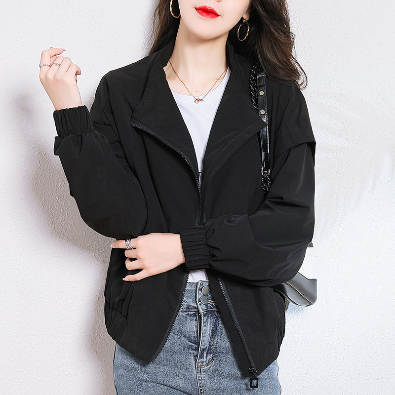 Hình thật thời trang áo khoác nữ cổ đứng phiên bản Hàn Quốc dáng rộng giản dị khí chất mới áo khoác đồng phục bóng chày nhỏ