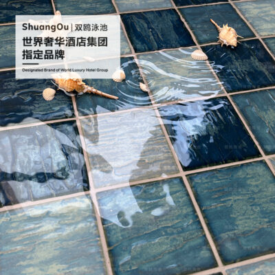Hồ bơi khảm gốm lồi lõm màu xanh hồ bơi homestay hồ bơi suối nước nóng hồ tắm gạch ốp tường và sàn phòng tắm